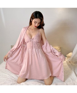 Breast Pad Nightgown Set - Ice and Snow Silk Satin Sexy Robe for WomenPajamas: product category, ice silk: fab..
