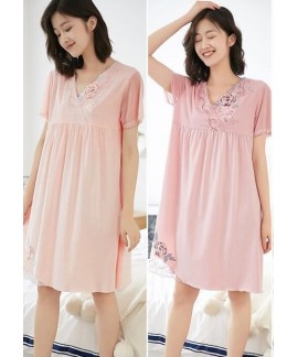 Tags: Lace Embroidered, Cotton Short Sleeve, Summer Nightgown, Female Long Nightwear, Mother Nightdress, Wholesale, Retail