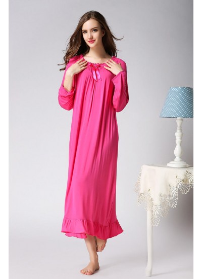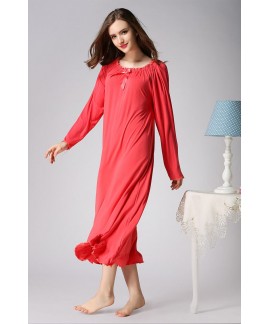 Tags: Spring Autumn Nightgown, Long Sleeve, Lotus Leaf Bow Nightgown, Cotton Loose, Vintage Sleeping Dress For Women
