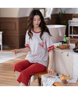 New Oversize Loose Cotton Fashion Short Sleeve Five-point Pants Ladies Home Service Suit For SummerNumber:C615..