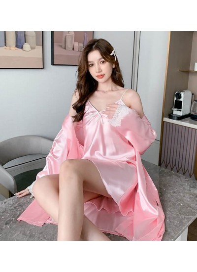 New women's spring and autumn two-piece lace ice silk sleepwear Wholesale and Retail