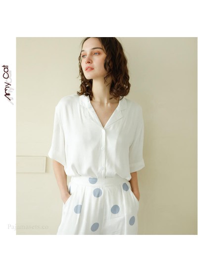 Simple college style Lapel color matching short sleeve Pajama setsNo: osali612555360392 Fabric Name: Satin Mai..