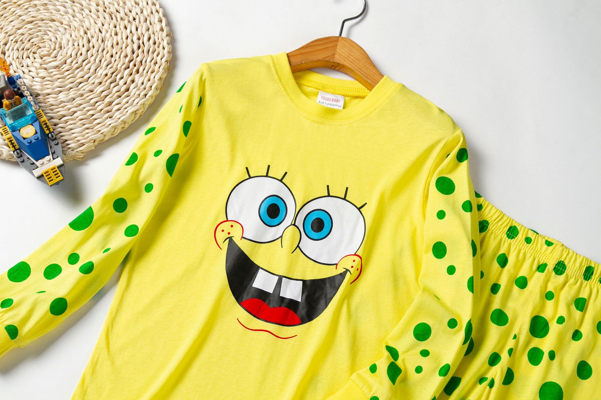 Spongebob pajama for kid Thin Long-sleeved for Summer yellow,soft and cotton