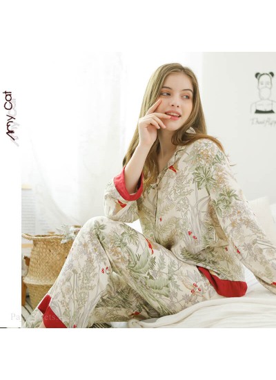 Spring new leisure grass printing pajama set outside wear sleepwear