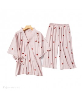 New Kimono Short-sleeved Shorts Pure Cotton Sweat Steaming Suit Ladies Pajamas For SummerNumber:C616696181825