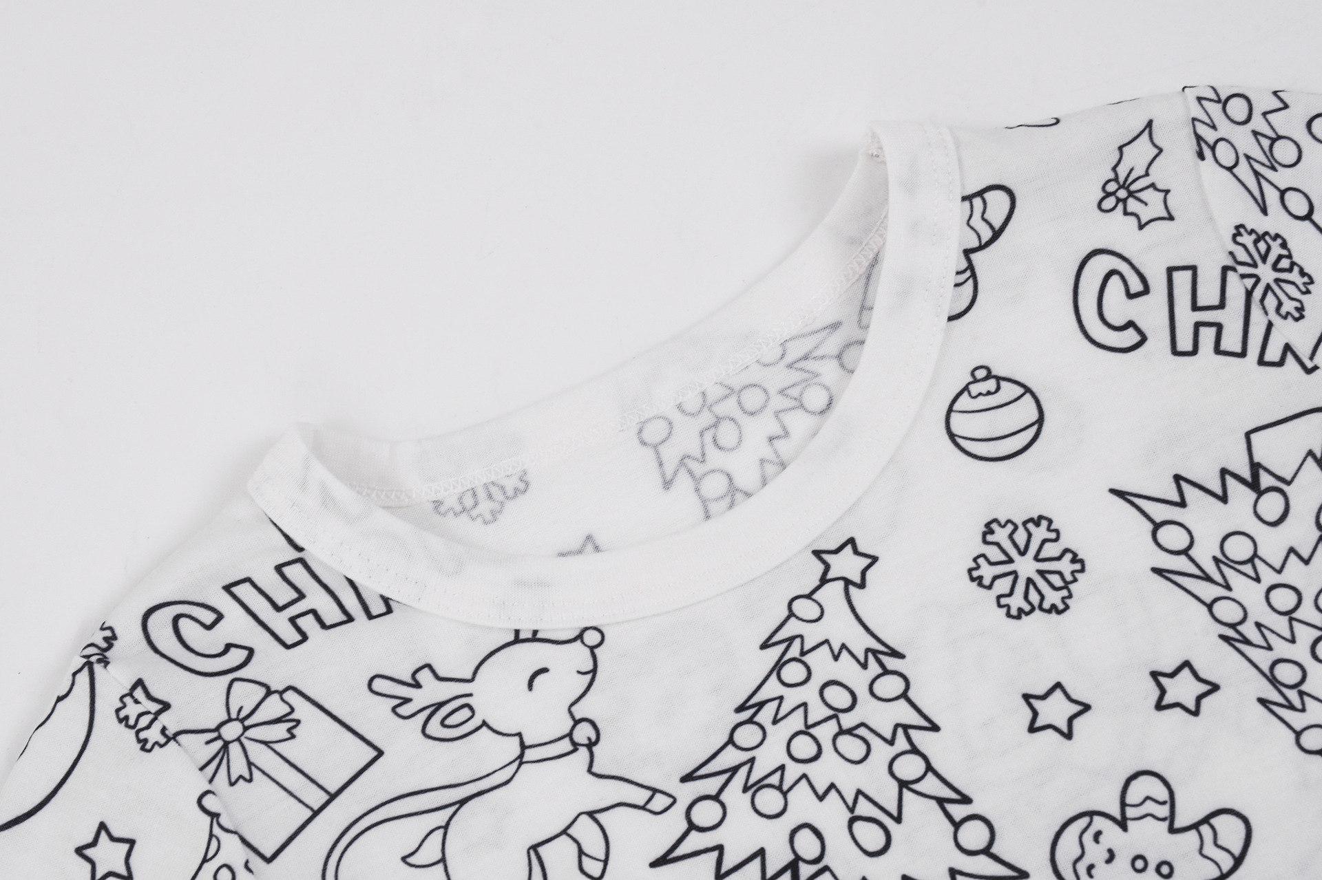 Flame-Resistant Kids DIY Coloring Pajama Set – Cartoon Christmas Sleepwear for Boys & Girls