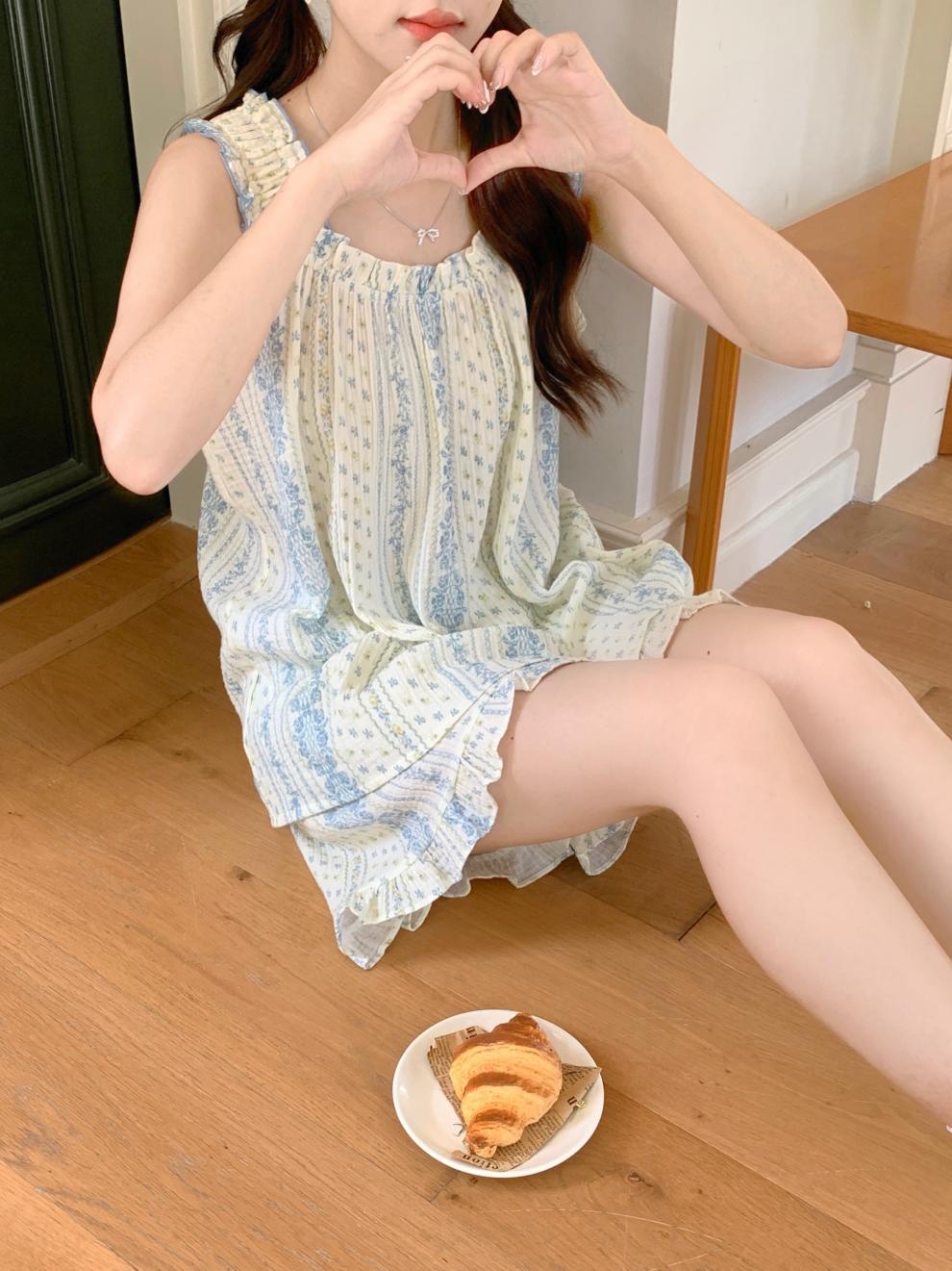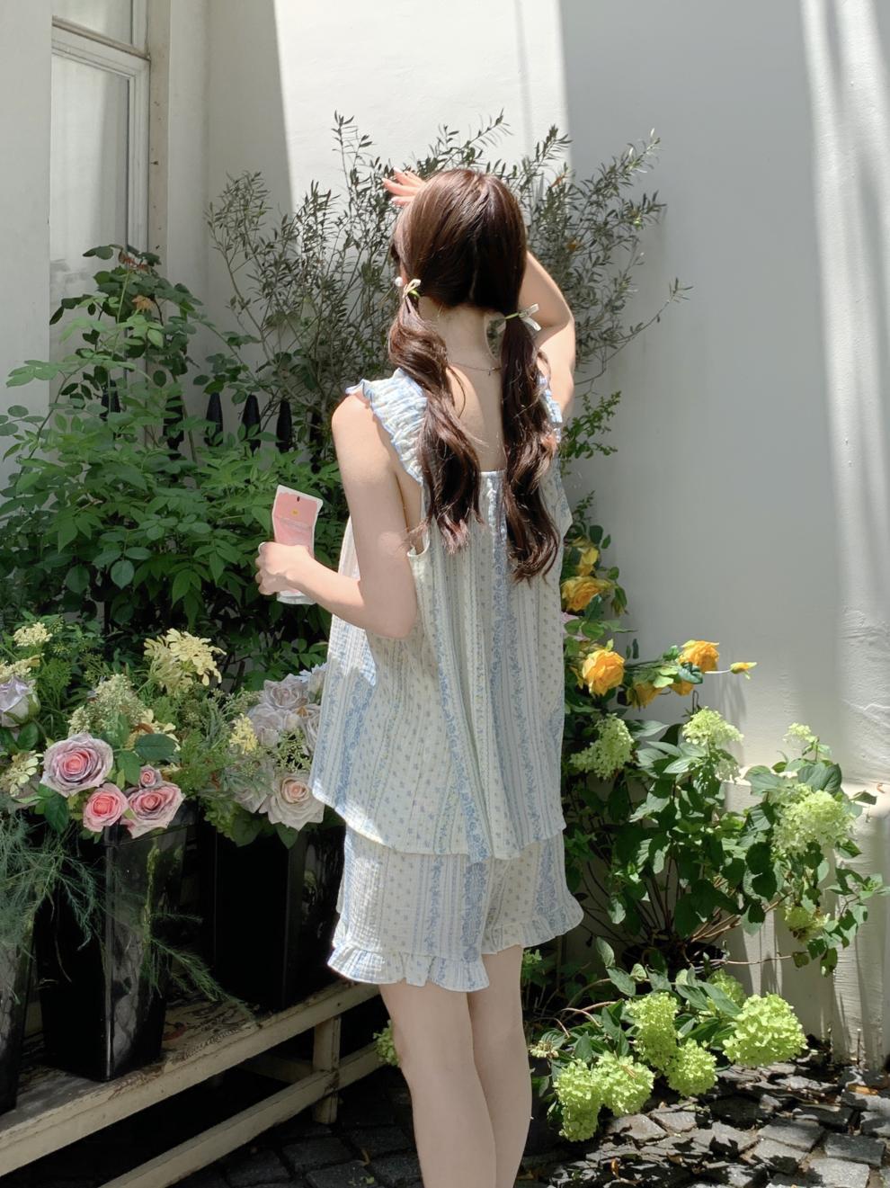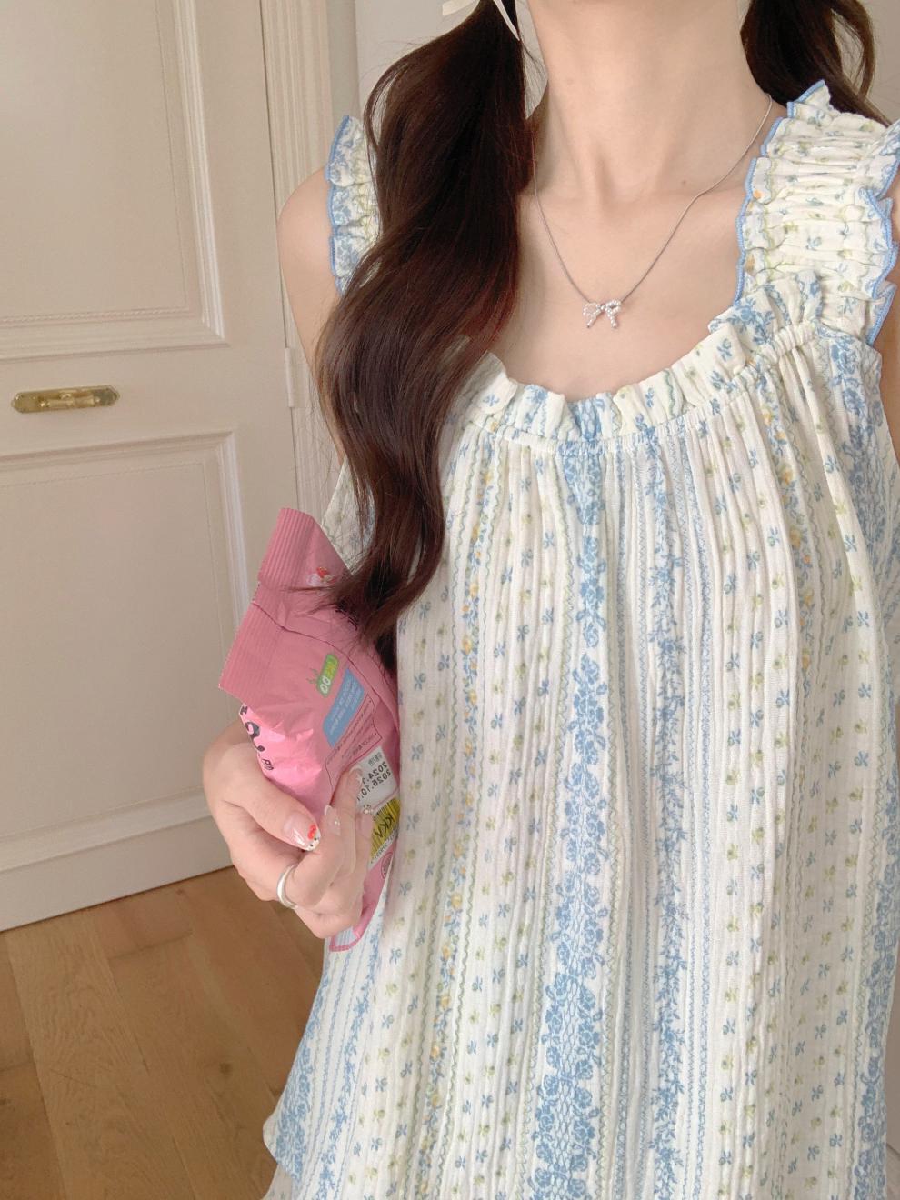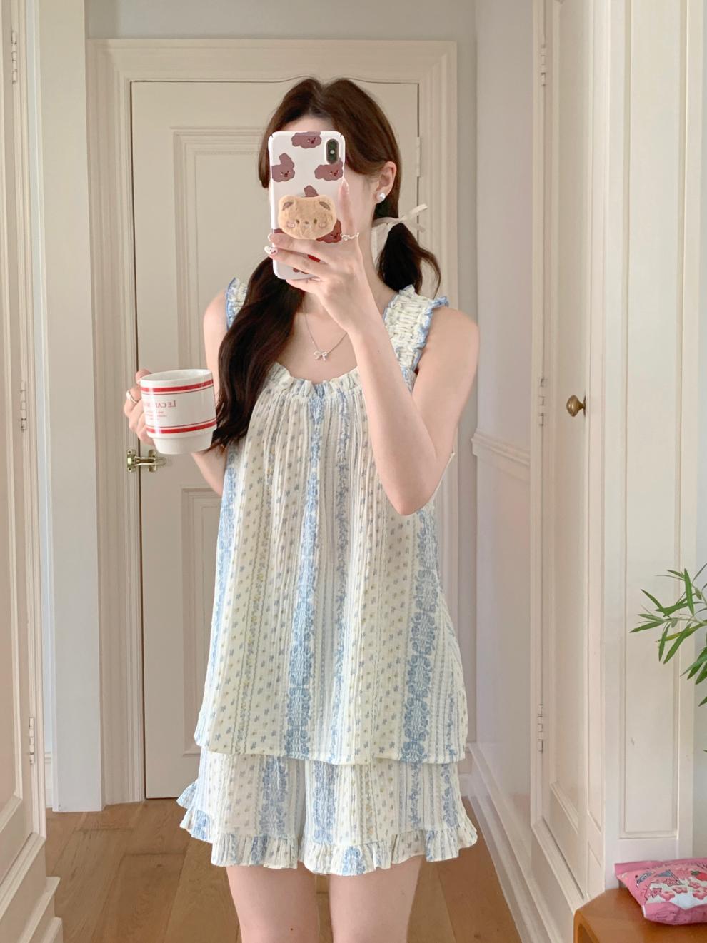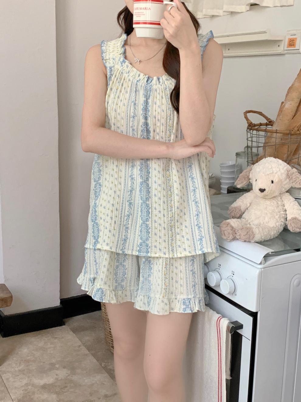 Tags: Korean pajama set, floral sleepwear, summer loungewear, camisole two-piece, 2025 women's pajamas, breathable homewear