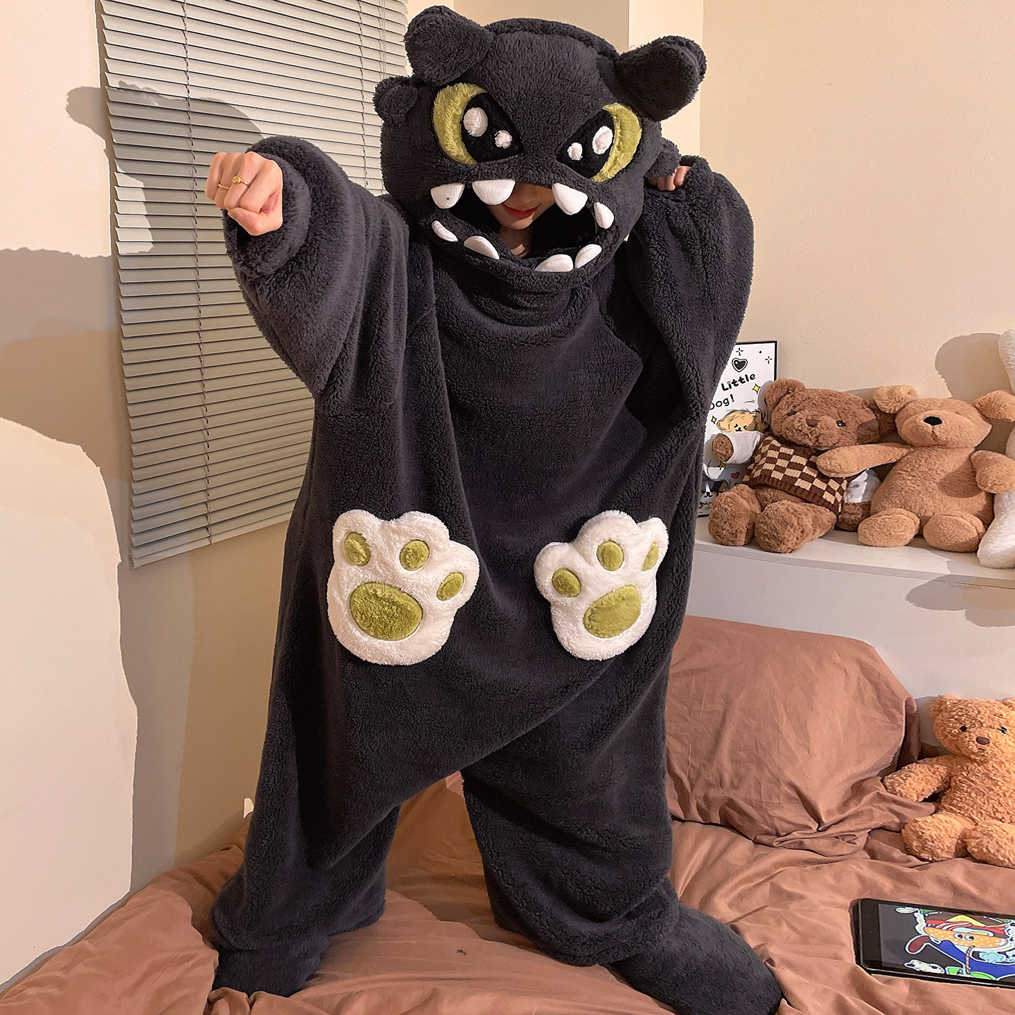 Funny Cartoon Coral Fleece Women’s Onesie Thickened Lazy Style Hoodless Jumpsuit Sleepwear