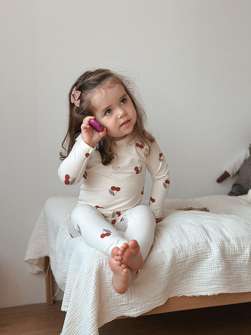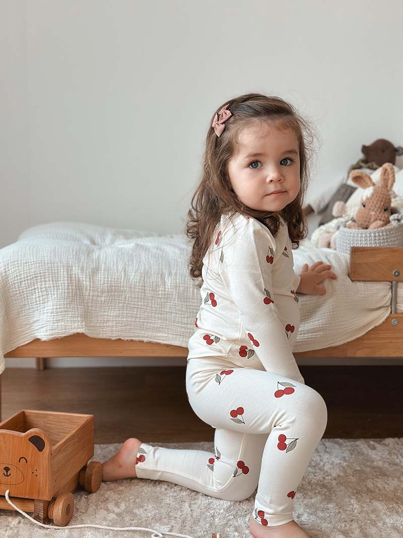 Tags: toddler pajamas, kids pajamas, cherry print pajamas, long sleeve pajamas, sleepwear, loungewear, soft pajamas, comfortable sleepwear, baby pajamas, children pajamas