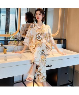 Silk-Like Daffodil 3/4 Sleeve Trousers Lapel Pajama SetFabric name: Imitation silk Product category: pajamas ..