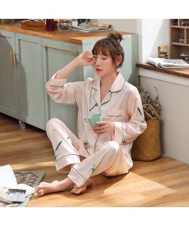 Spring and autumn thin two-piece Pajama women's casual and comfortable silk printing long sleeve home clothes ..