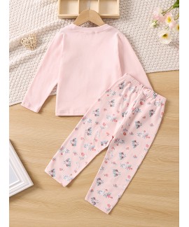 Kids Cute Print Round Neck Long Sleeve Pants Pajama Set Color : PinkSize : 1-2Y,3-4Y,4-5Y,5-6Y,7-8YSize gui..