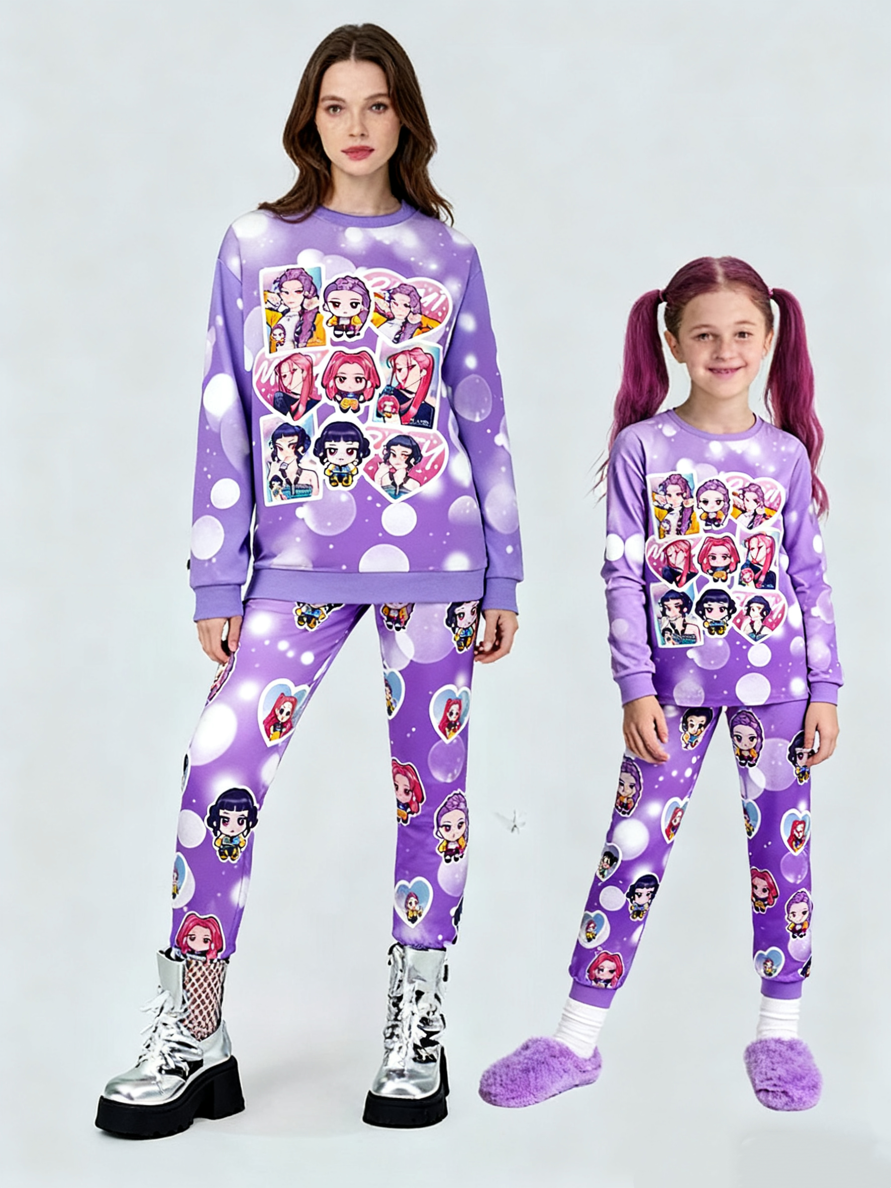 Tags: K-pop Demon Hunter pajamas, girls' pajamas set, two-piece pants set, autumn winter pajamas, cartoon pattern pajamas