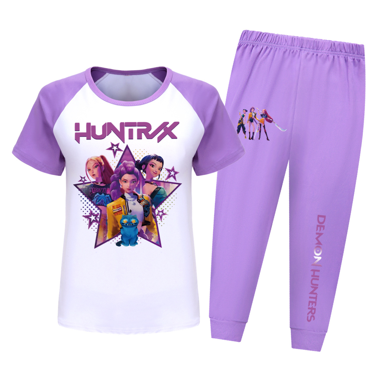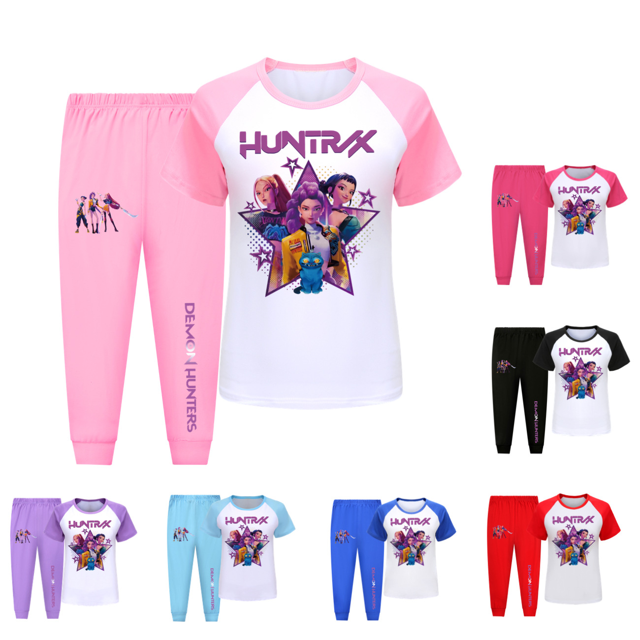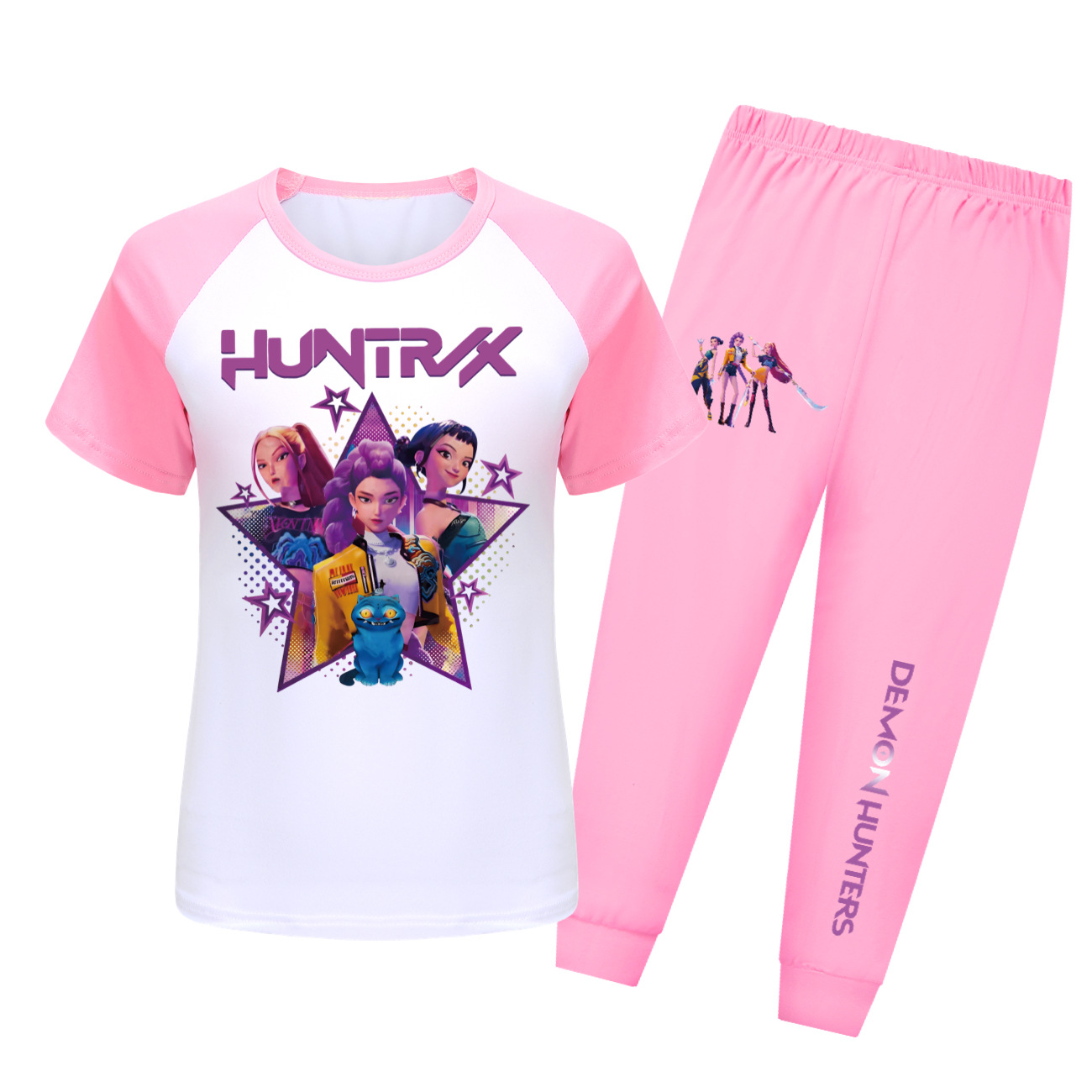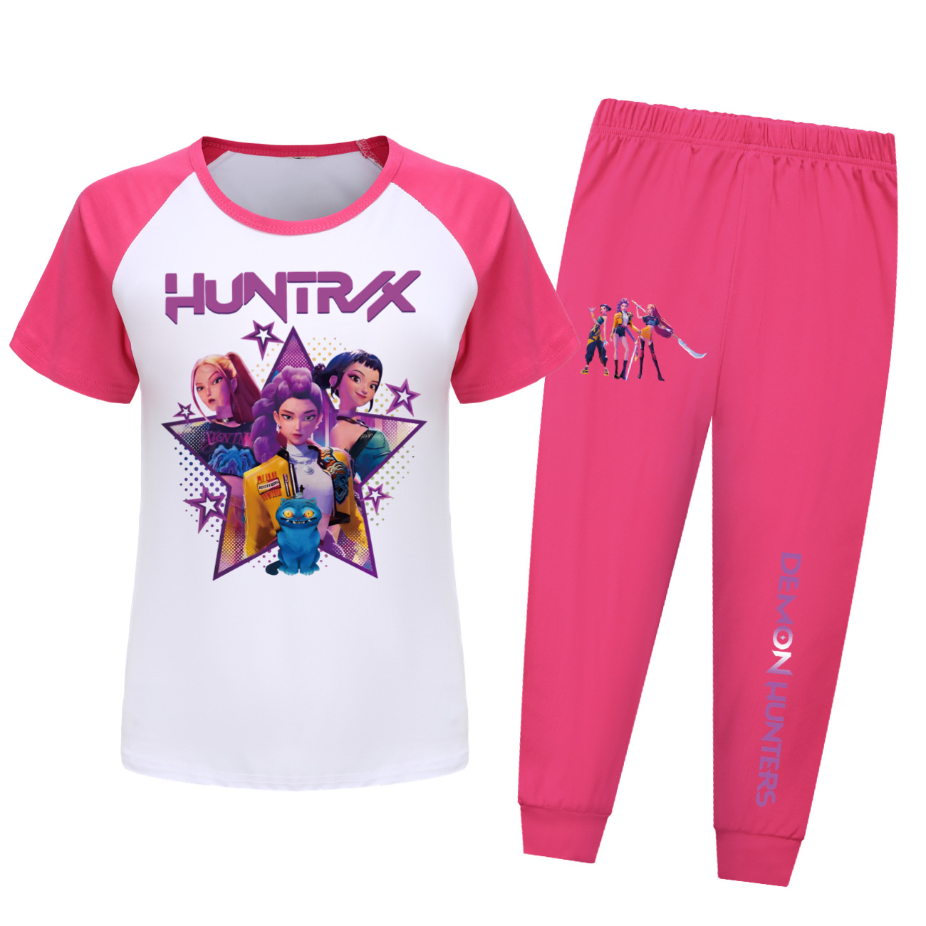 K-pop Demon Hunter "Huntrx" Cartoon Character Short-Sleeve & Long Pants Pajama Set for Kids (Multiple Colors)