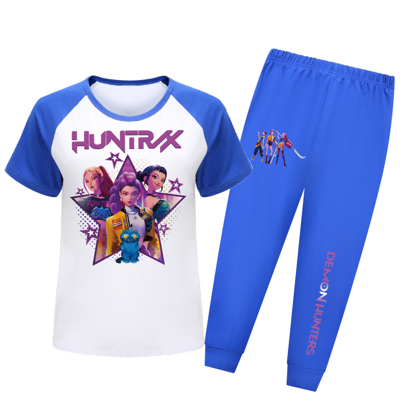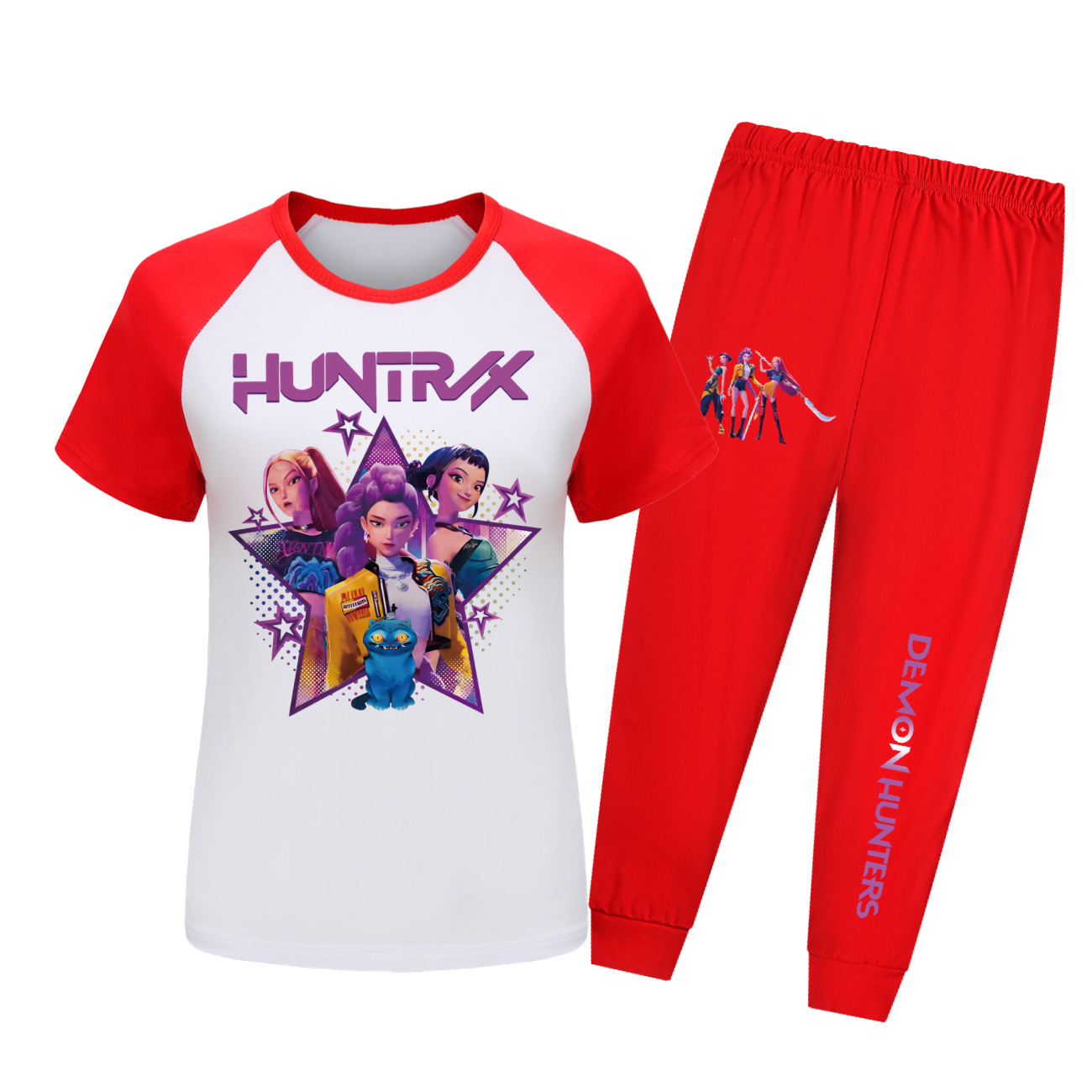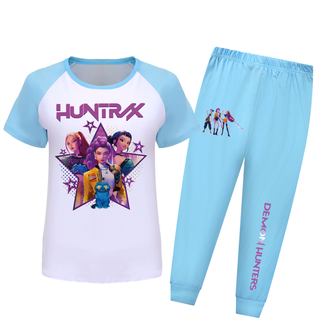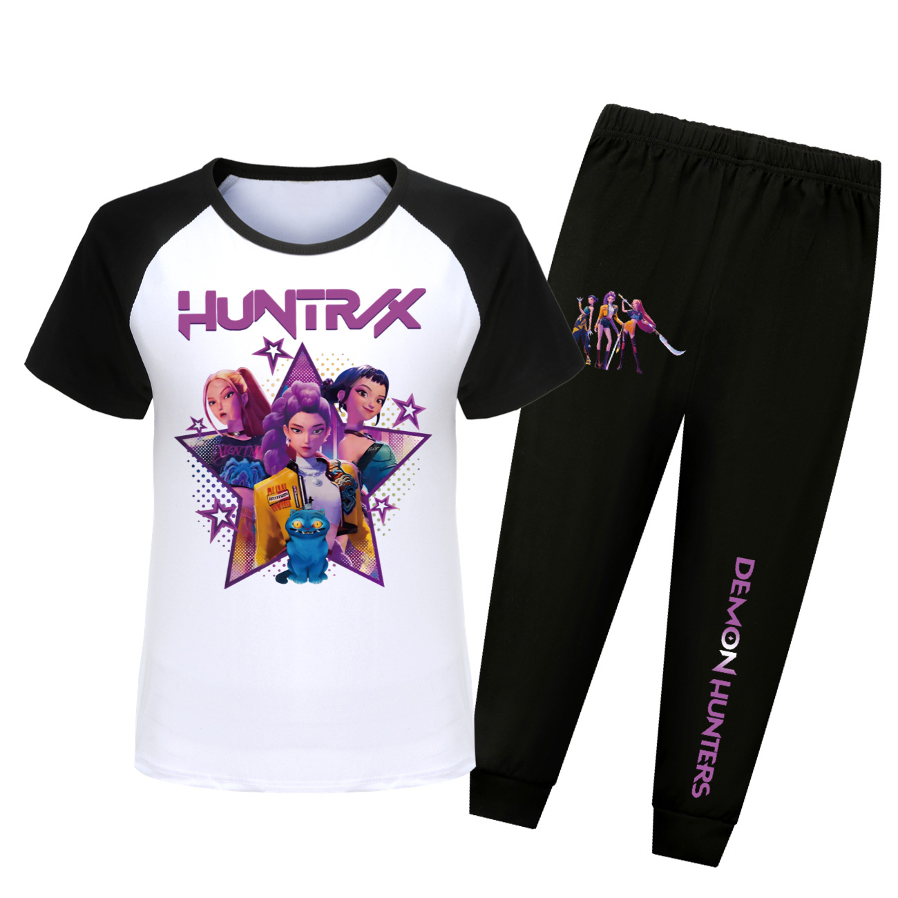K-pop Demon Hunter "Huntrx" Cartoon Character Short-Sleeve & Long Pants Pajama Set for Kids (Multiple Colors)