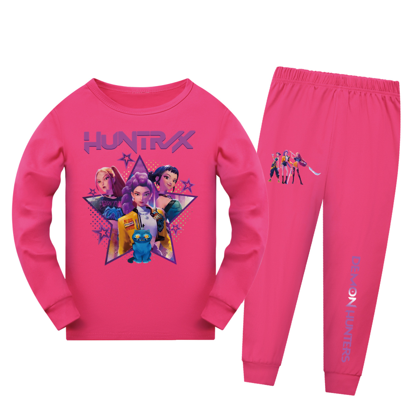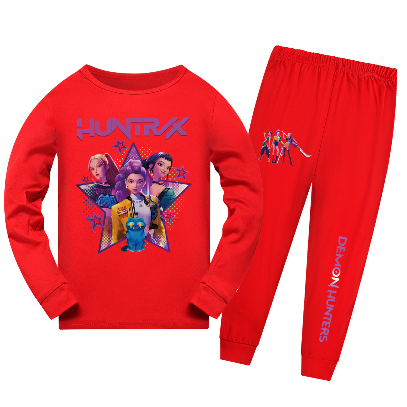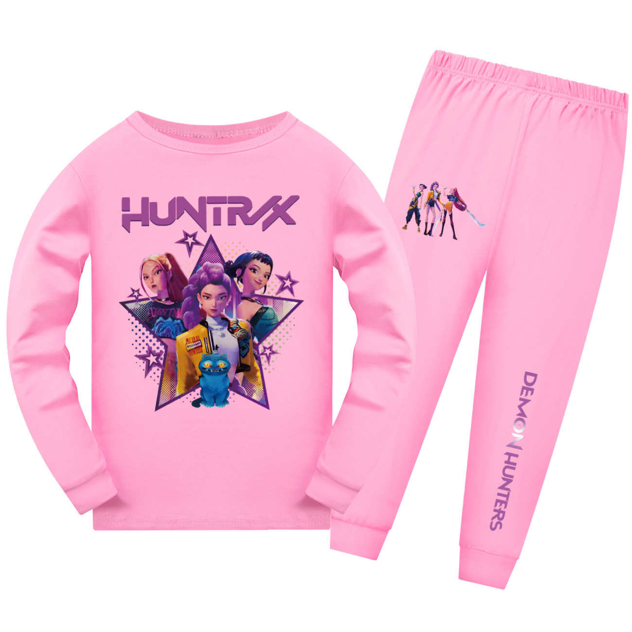 K-pop Demon Hunter "Huntrx" Cartoon Print Long-Sleeve Pajama Set For Kids (Multiple Colors)