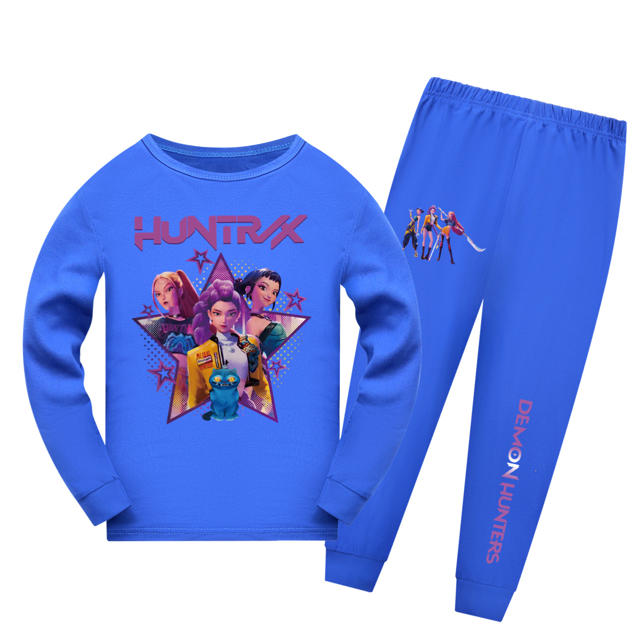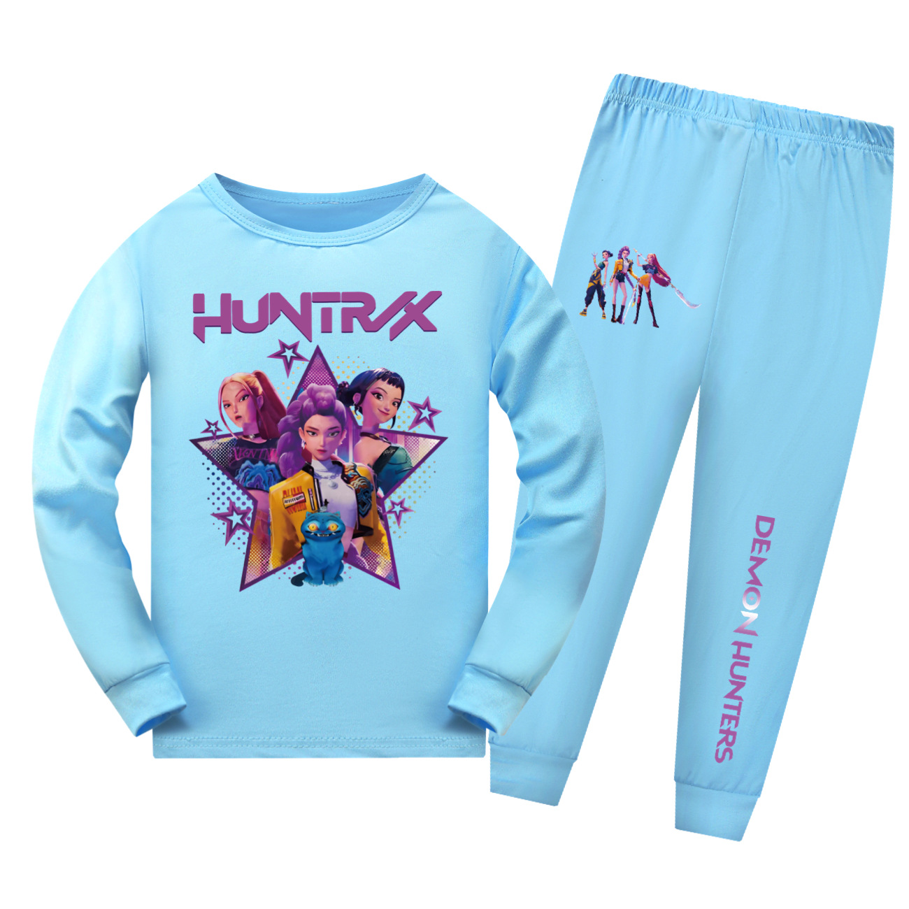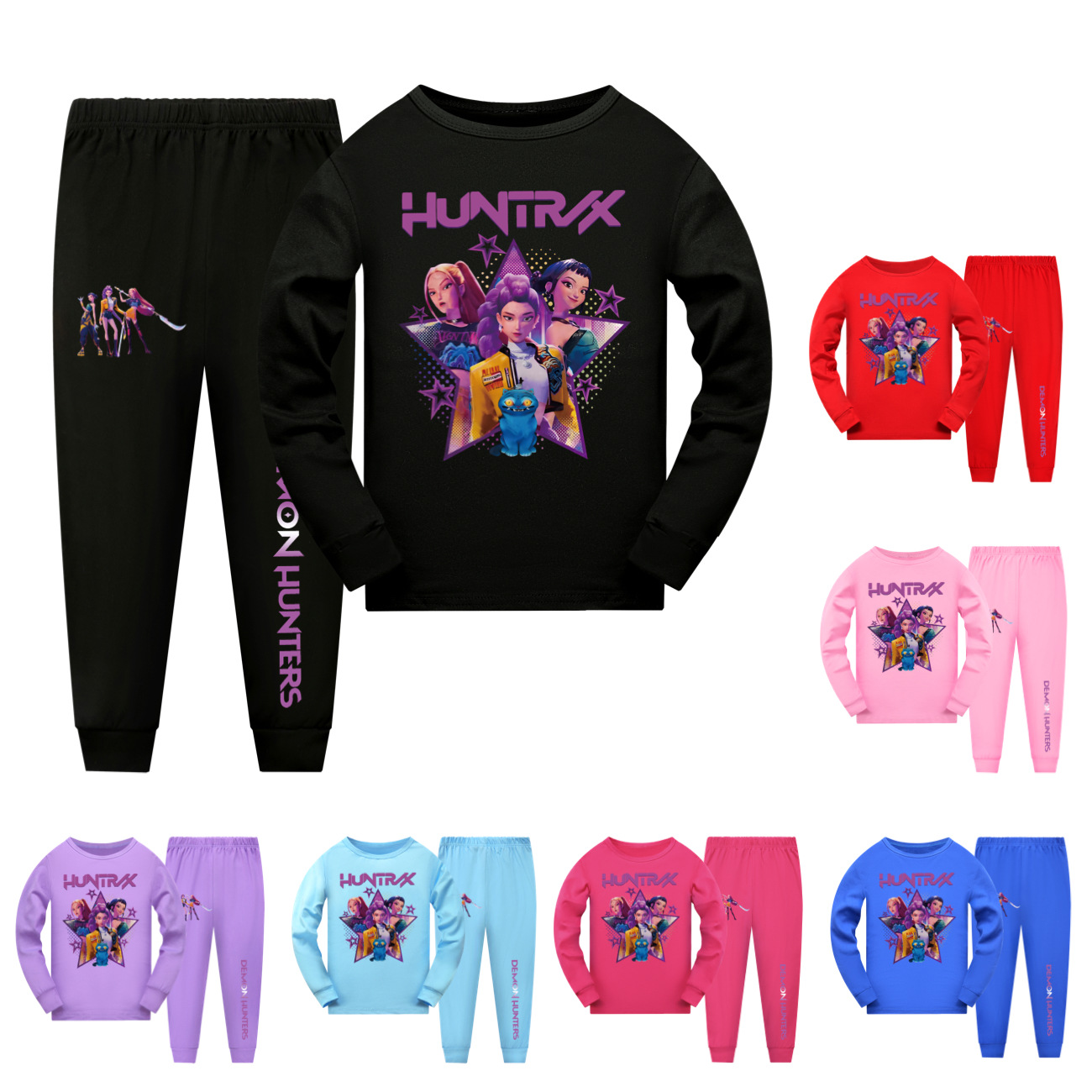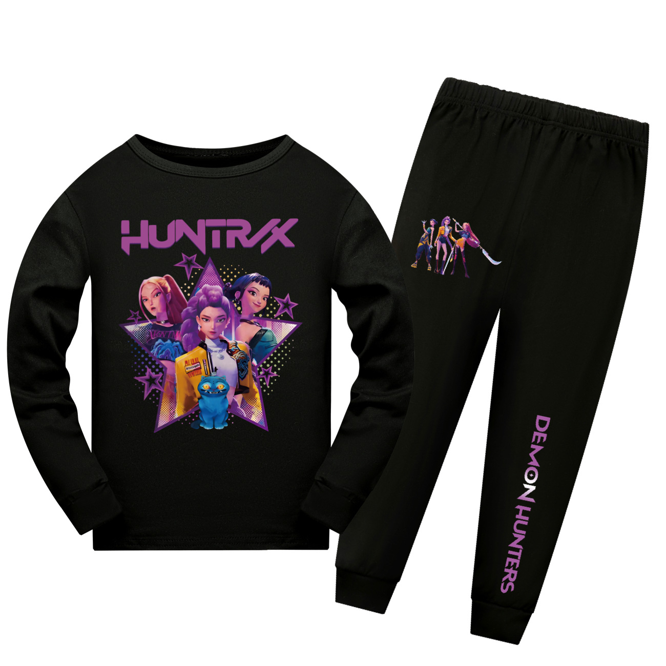 K-pop Demon Hunter "Huntrx" Cartoon Print Long-Sleeve Pajama Set For Kids (Multiple Colors)