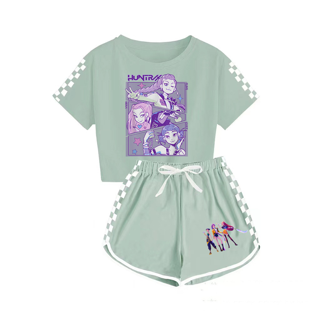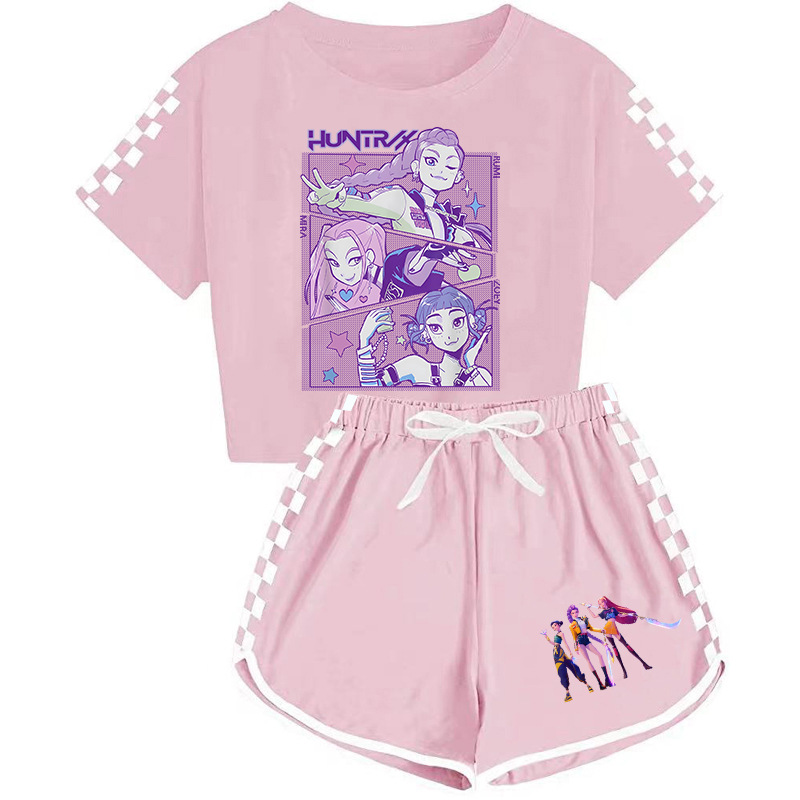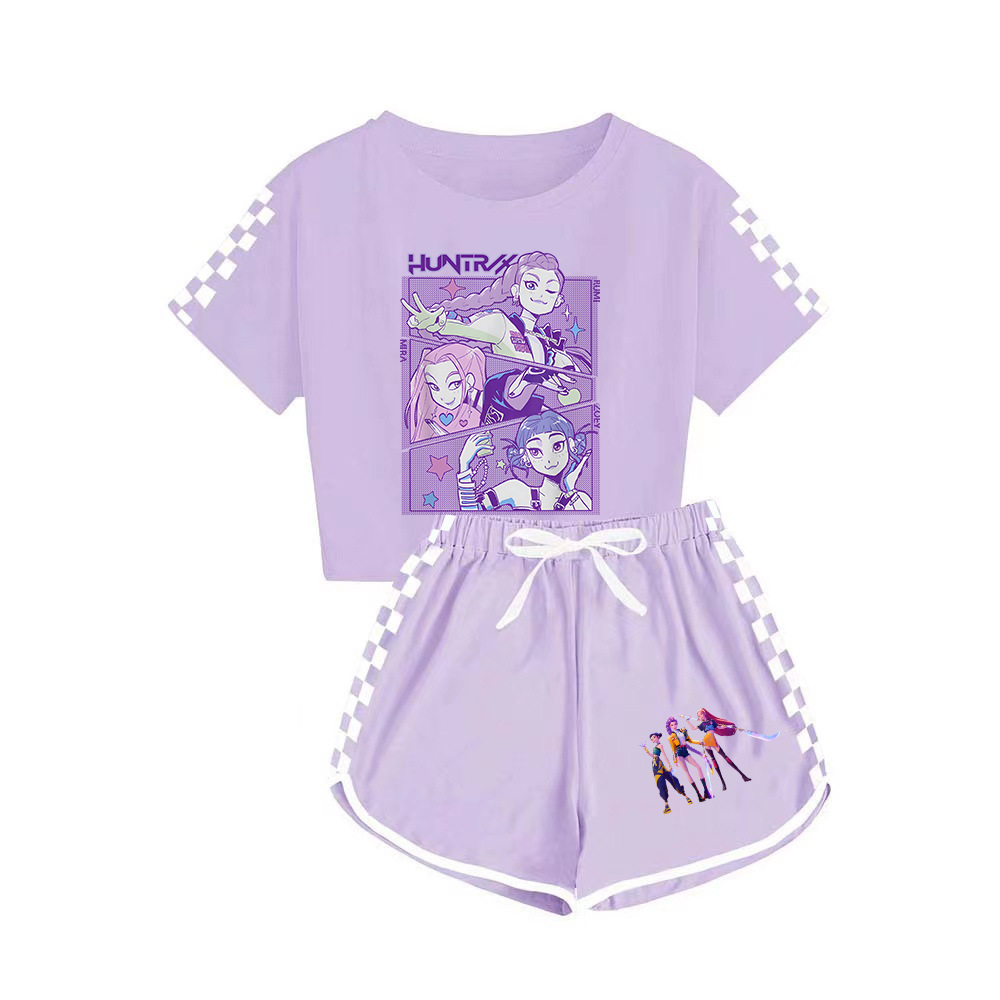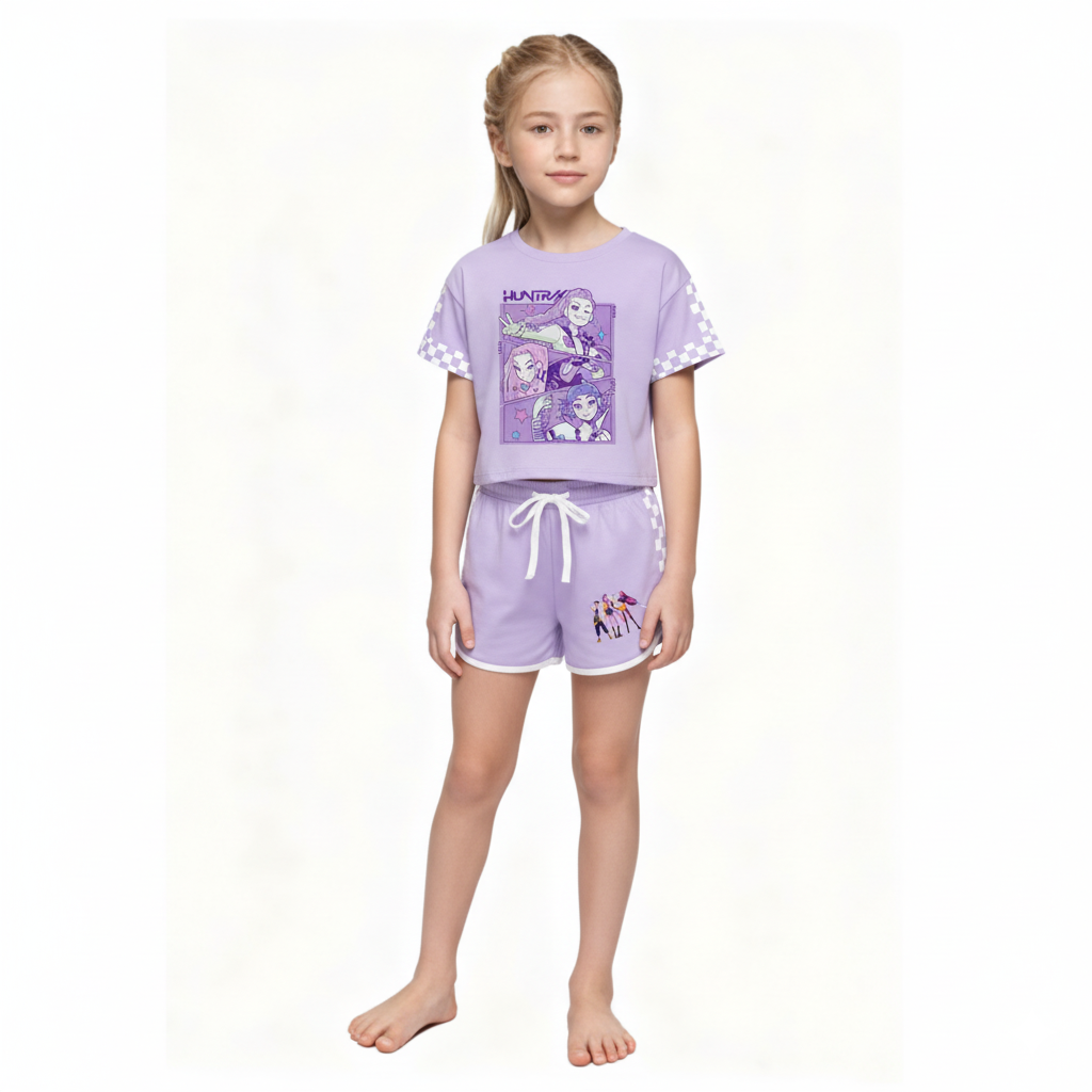 K-pop Demon Hunter “Huntrx Squad” Cartoon Character Short-Sleeve & Shorts Pajama Set For Girls