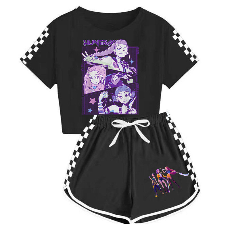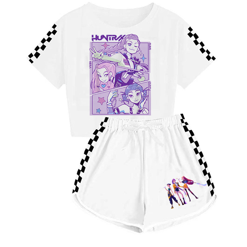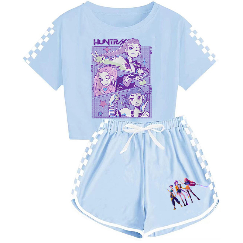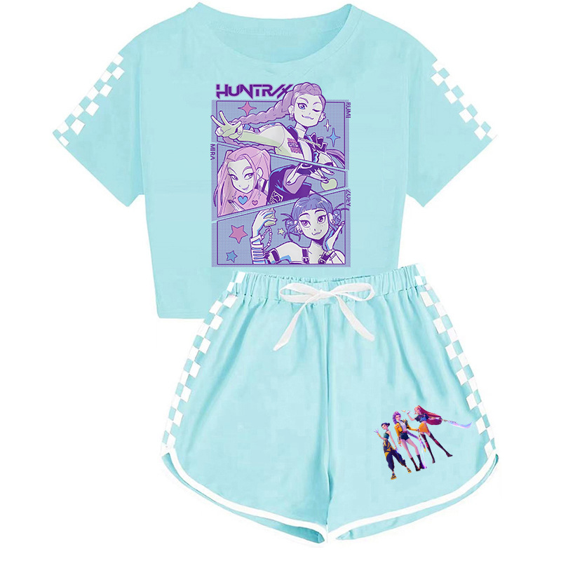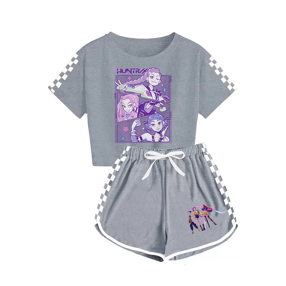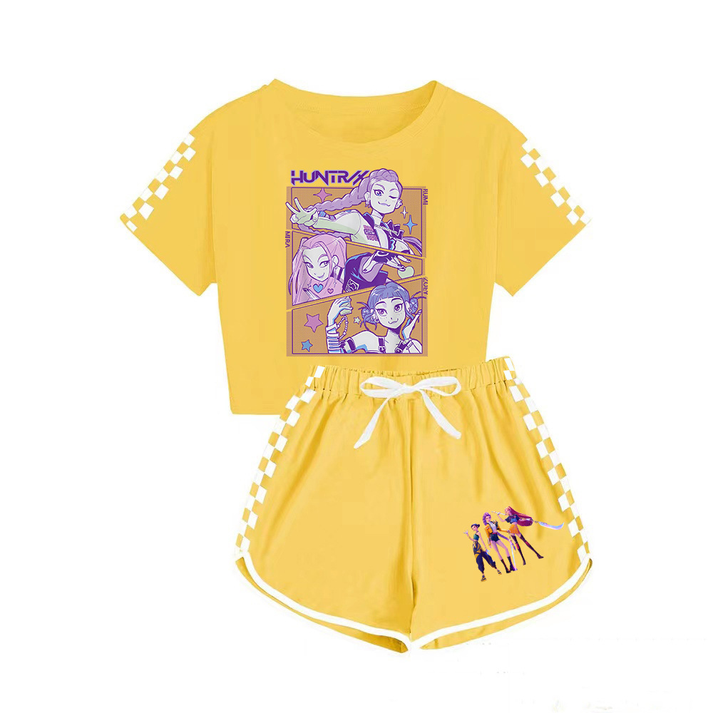K-pop Demon Hunter “Huntrx Squad” Cartoon Character Short-Sleeve & Shorts Pajama Set For Girls