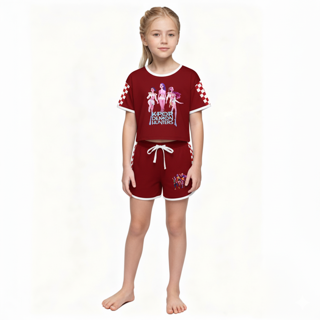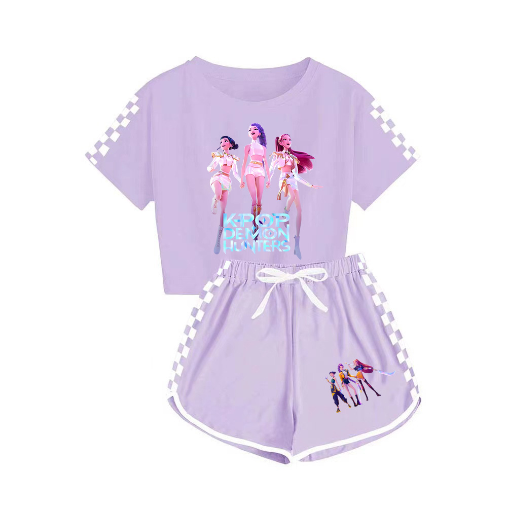 K-pop Demon Hunter T-shirt And Shorts Sports Pajama Set