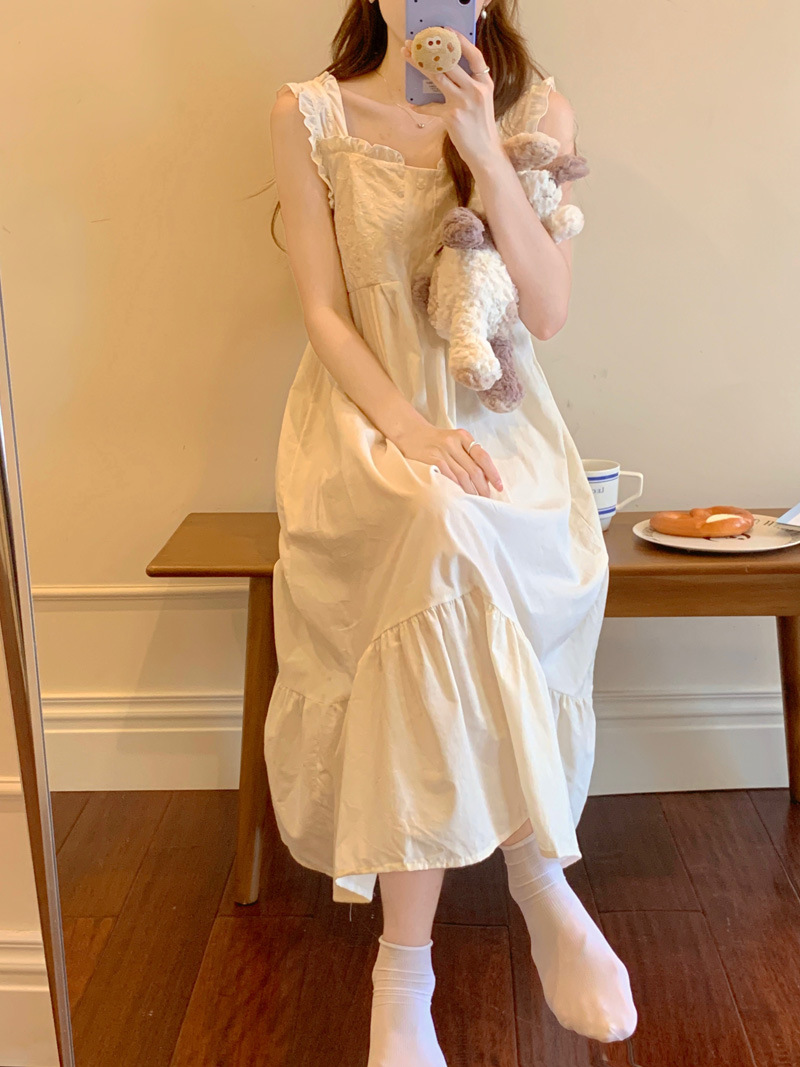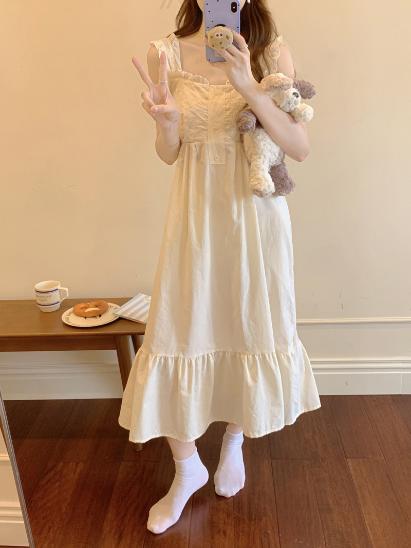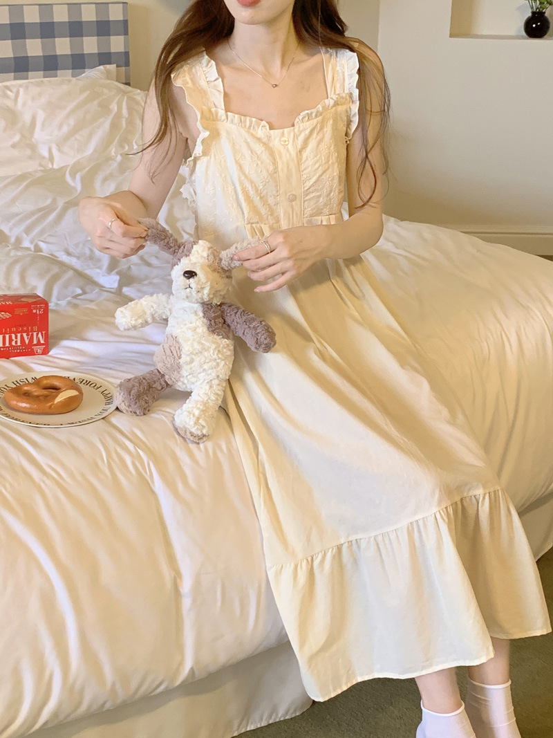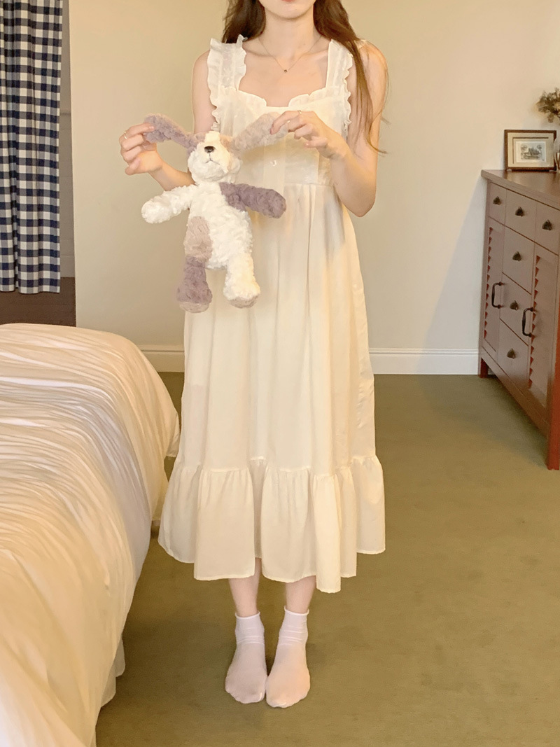 Cottagecore Dream: Square Neck Camisole Sleep Dress‌Float through summer nights in this apricot-hued cotton ni..