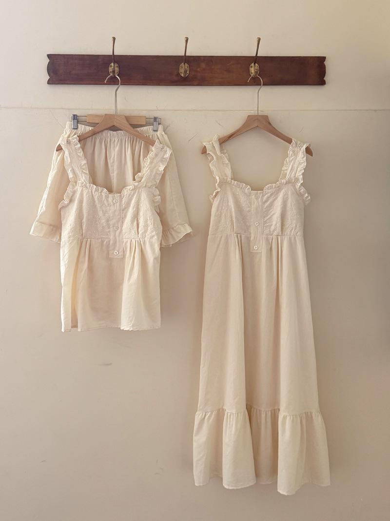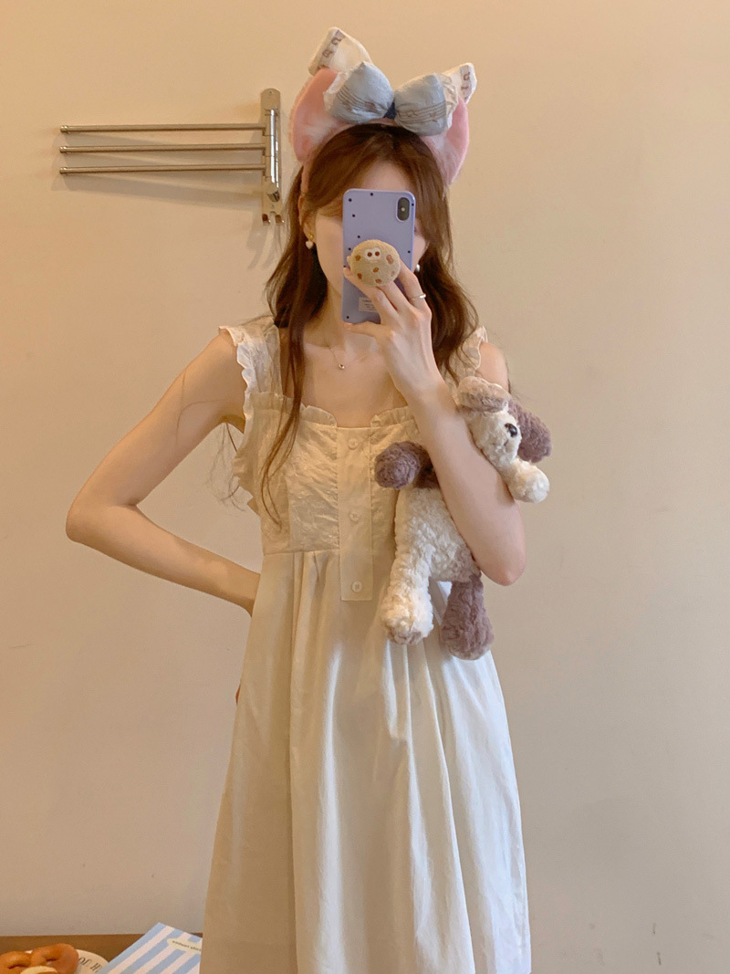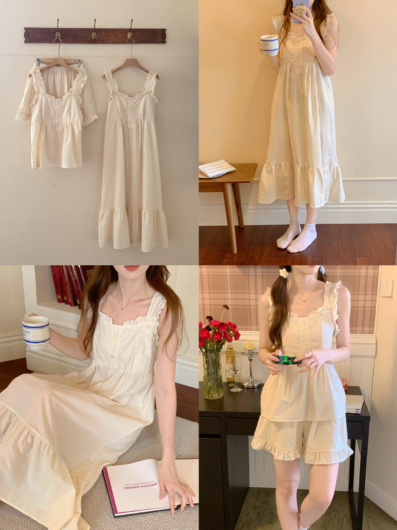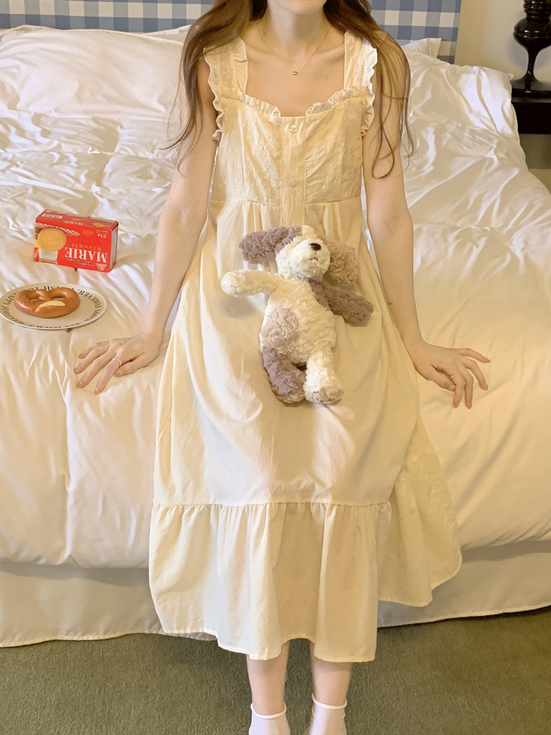 Cottagecore Dream: Square Neck Camisole Sleep Dress‌Float through summer nights in this apricot-hued cotton ni..