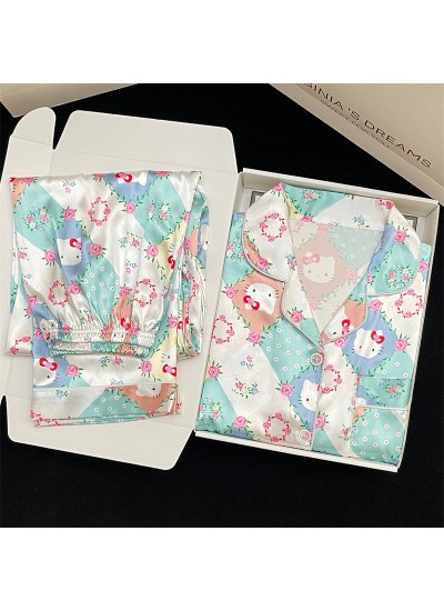 Lovely Long Sleeve Ice Silk Spring Summer Cartoon Fresh Women's Homewear Set