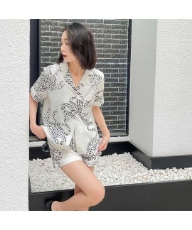 Tags: Personalized Leopard Print Women's Short-sleeved Shorts Set Breathable Cotton + Rayon Homewear Can Be Worn Outside Pajamas and Pajamas Summer