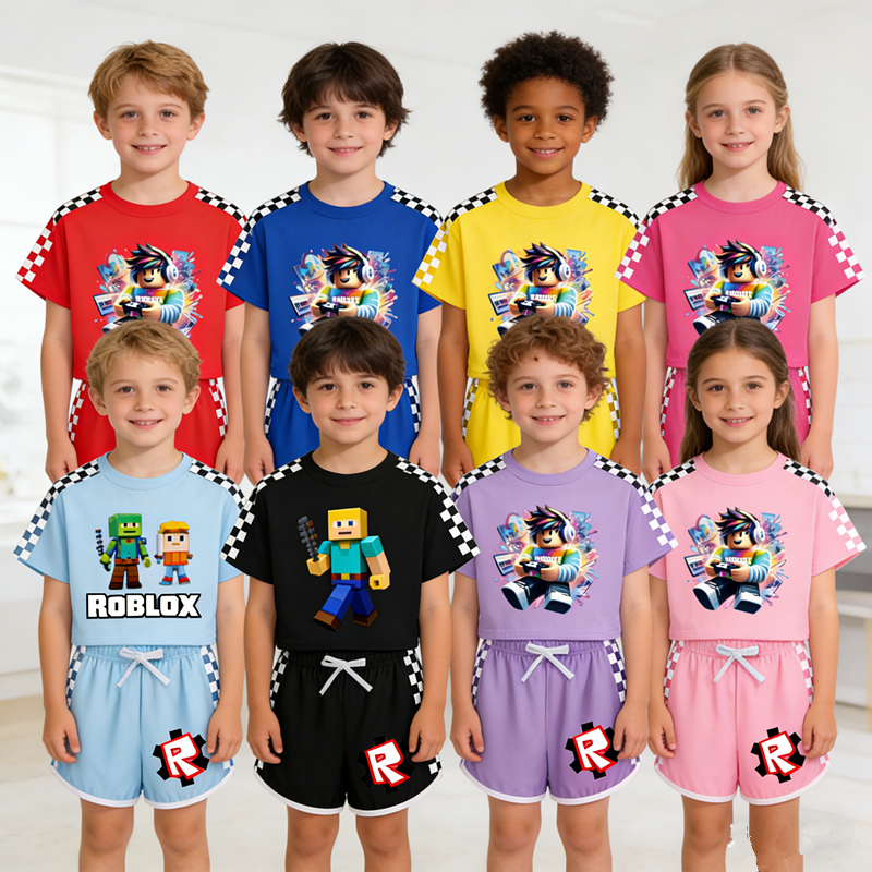 Tags: Roblox Pajamas, Family Matching PJs, Kids Gamer Sleepwear, Milk Silk Pajamas, Summer Short Pajama Set, Roblox Merch