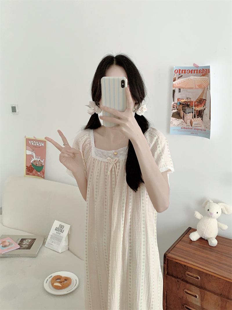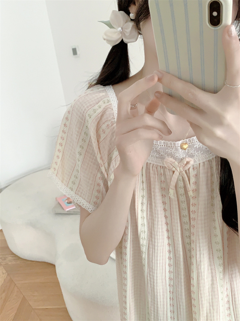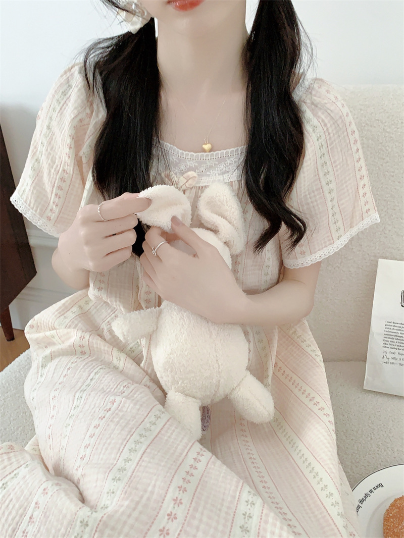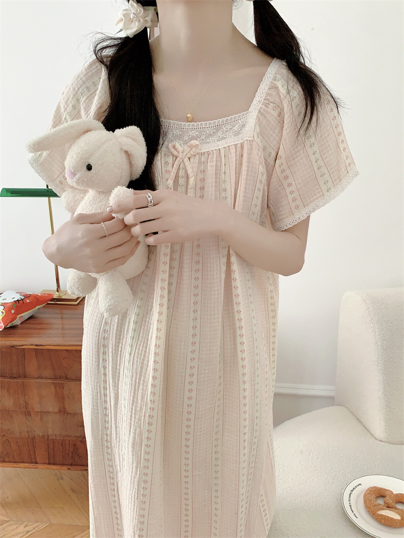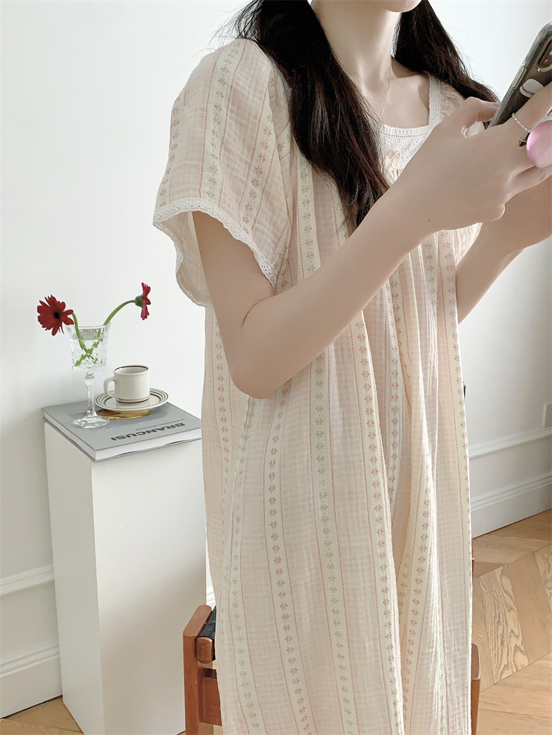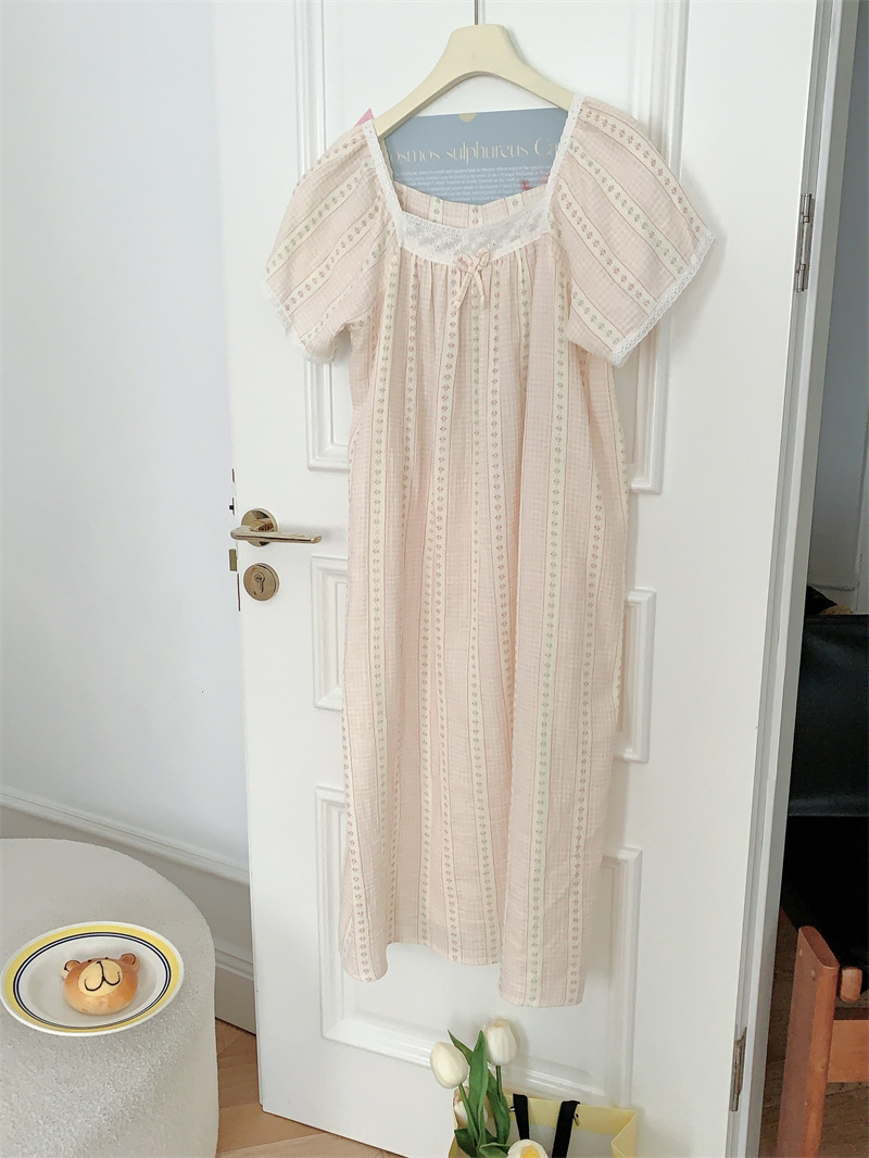 Tags: Korean nightgown, floral lace sleepwear, relaxed loungewear, loose fit pajamas, 2025 women's homewear, breathable cotton dress