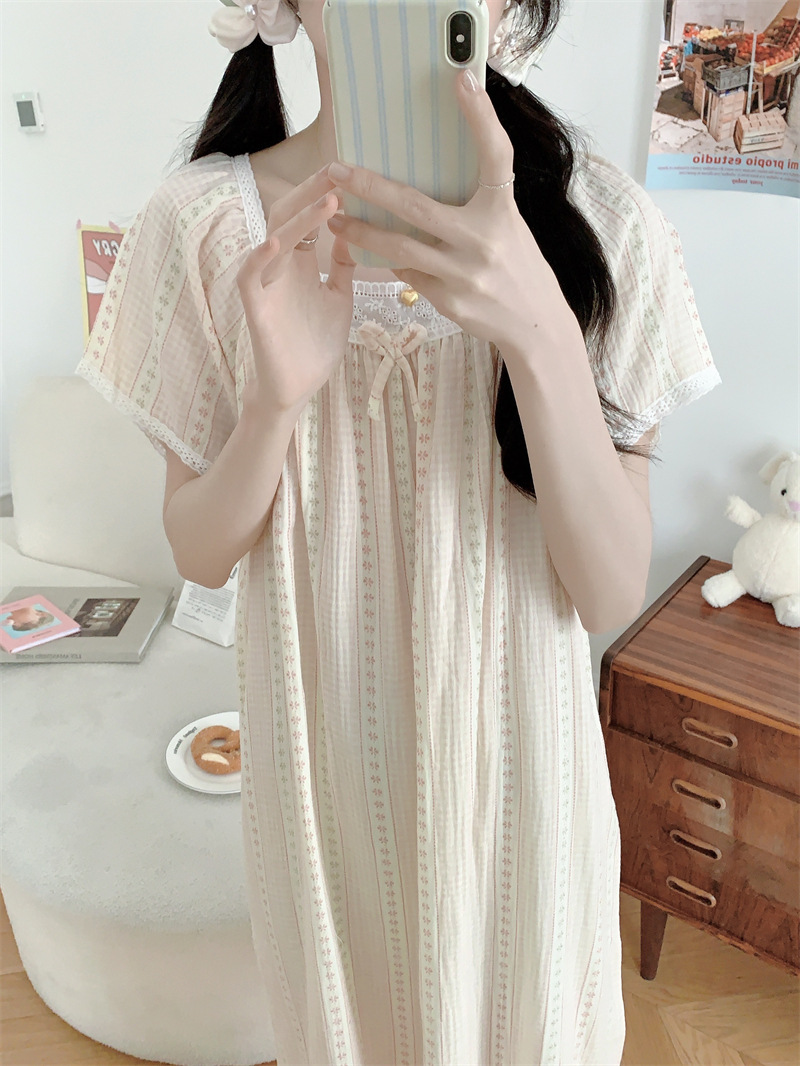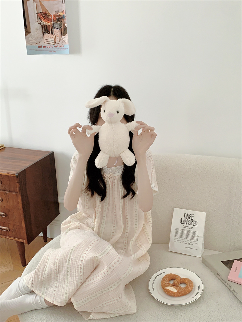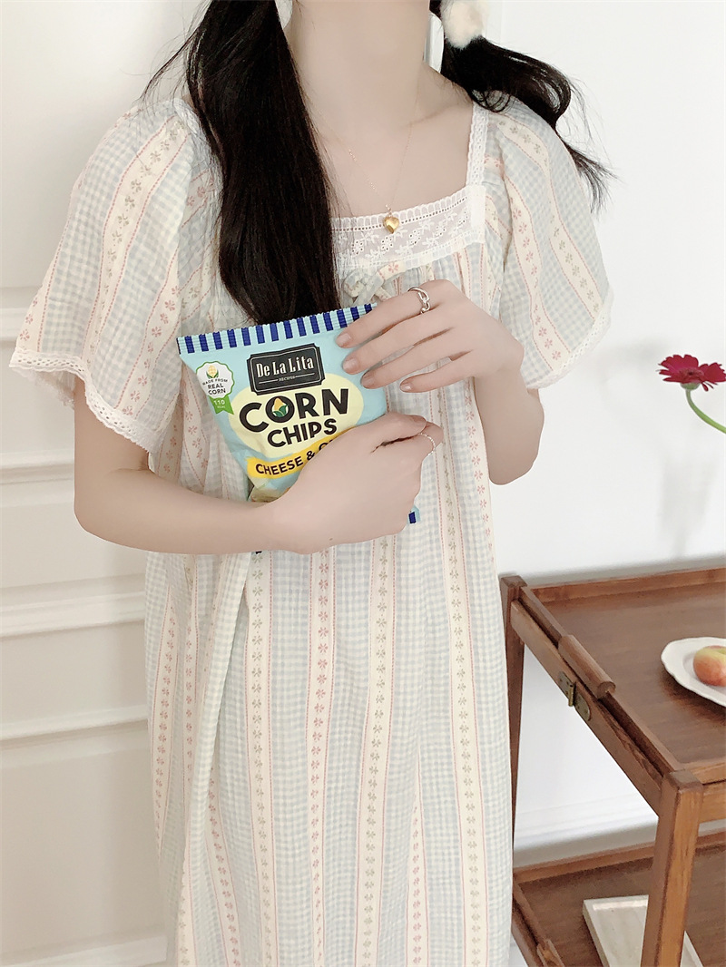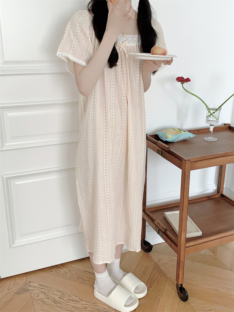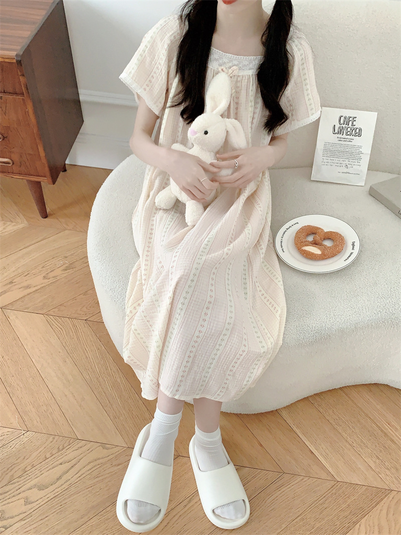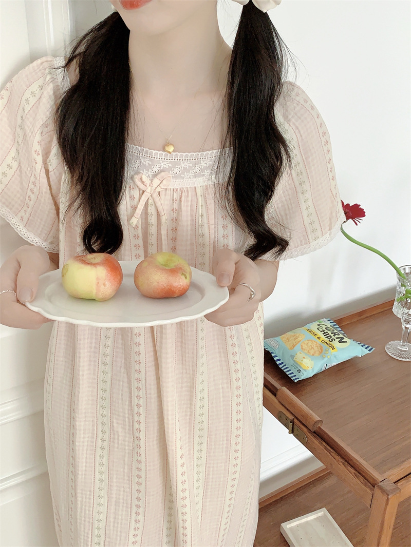 Tags: Korean nightgown, floral lace sleepwear, relaxed loungewear, loose fit pajamas, 2025 women's homewear, breathable cotton dress