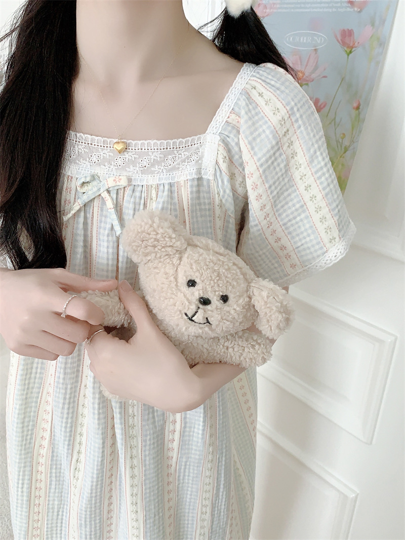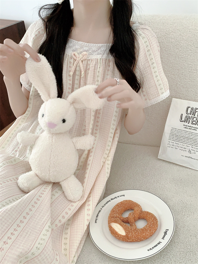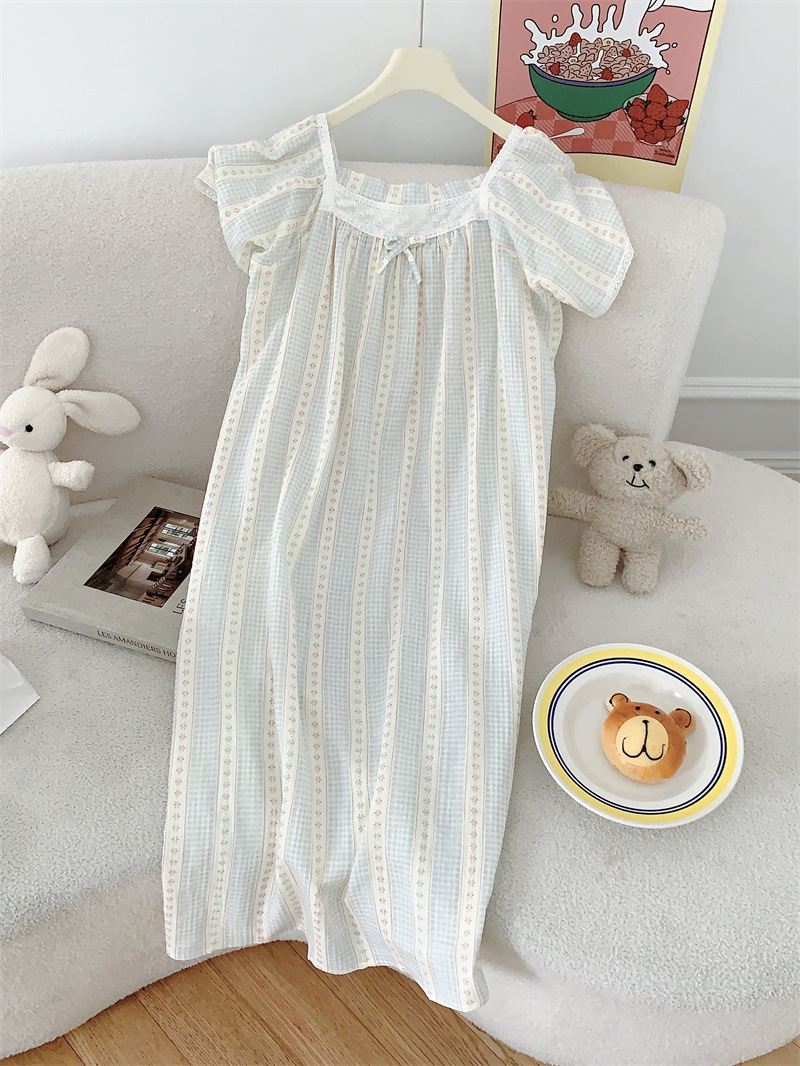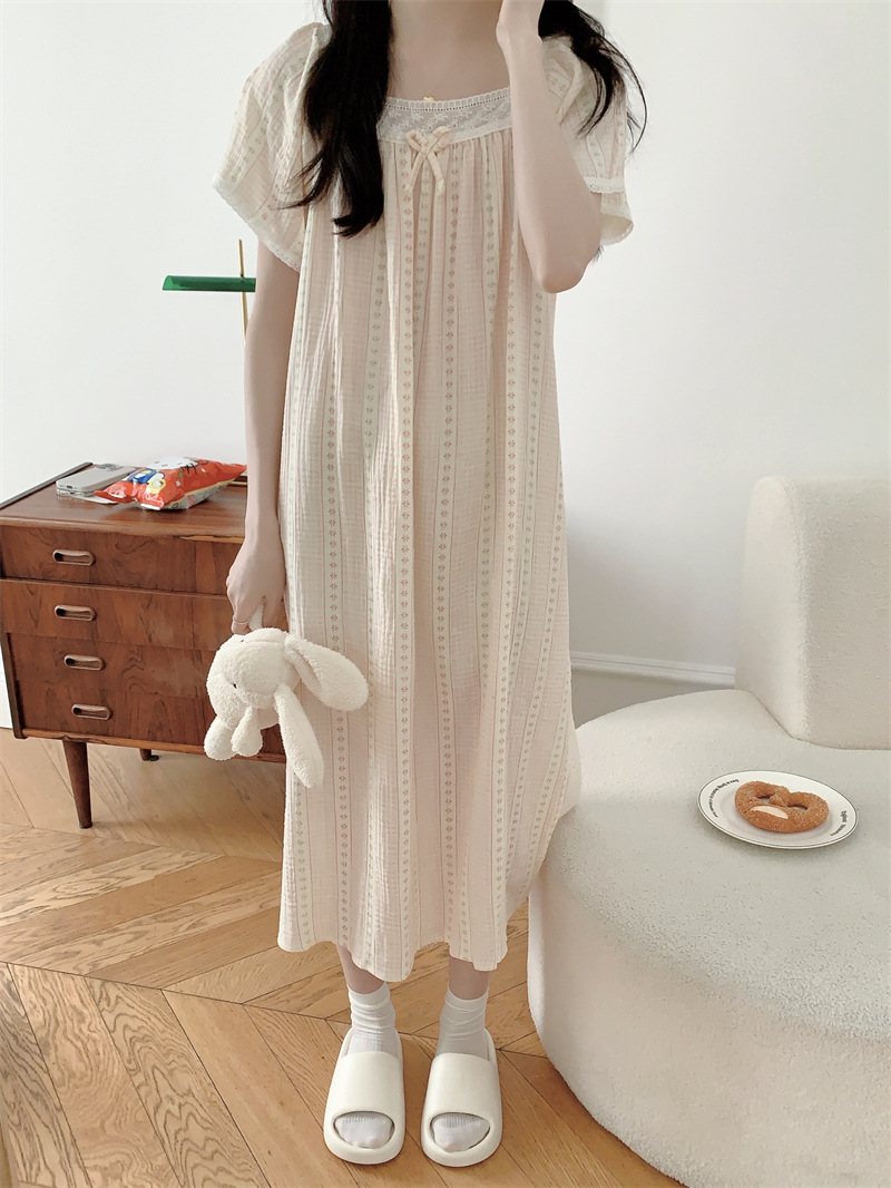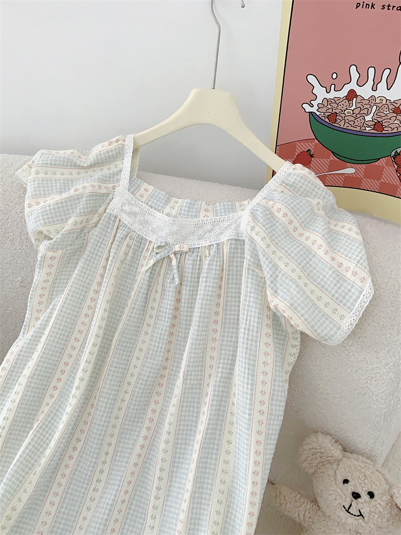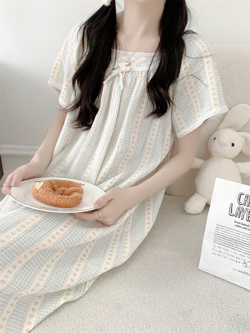 Tags: Korean nightgown, floral lace sleepwear, relaxed loungewear, loose fit pajamas, 2025 women's homewear, breathable cotton dress