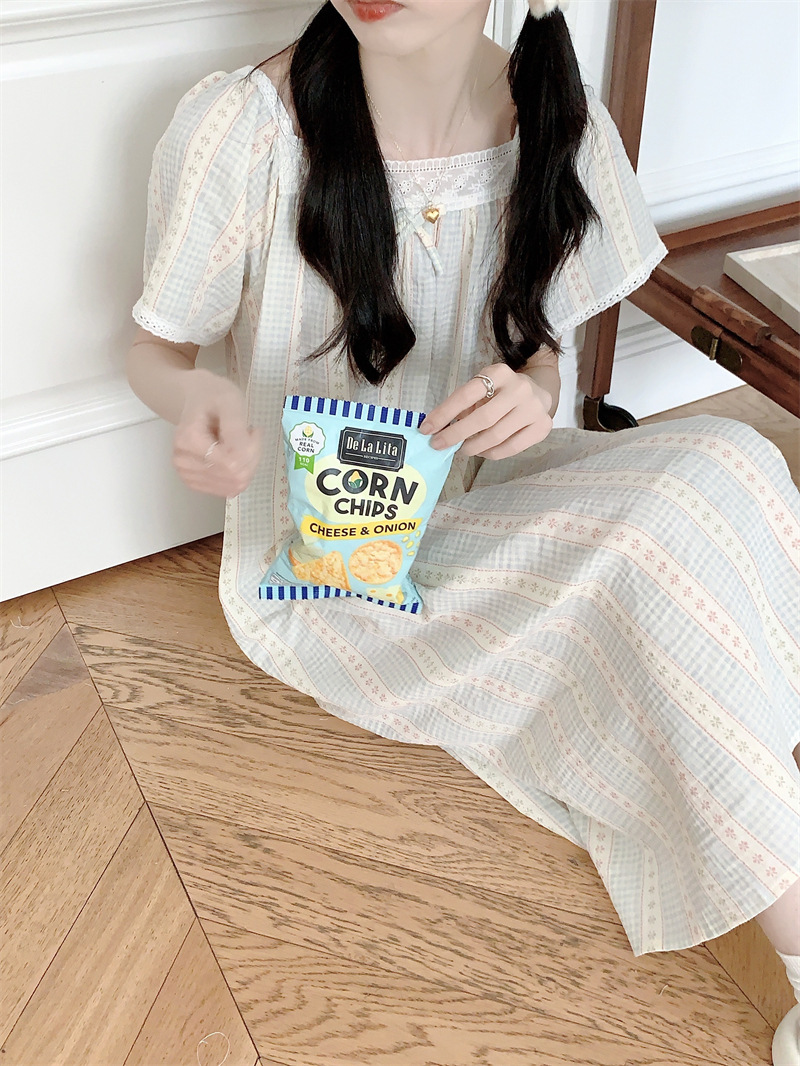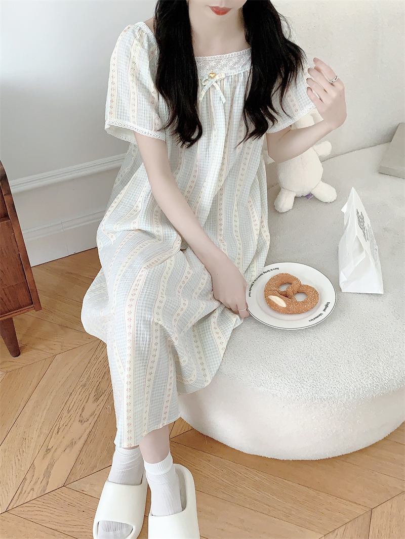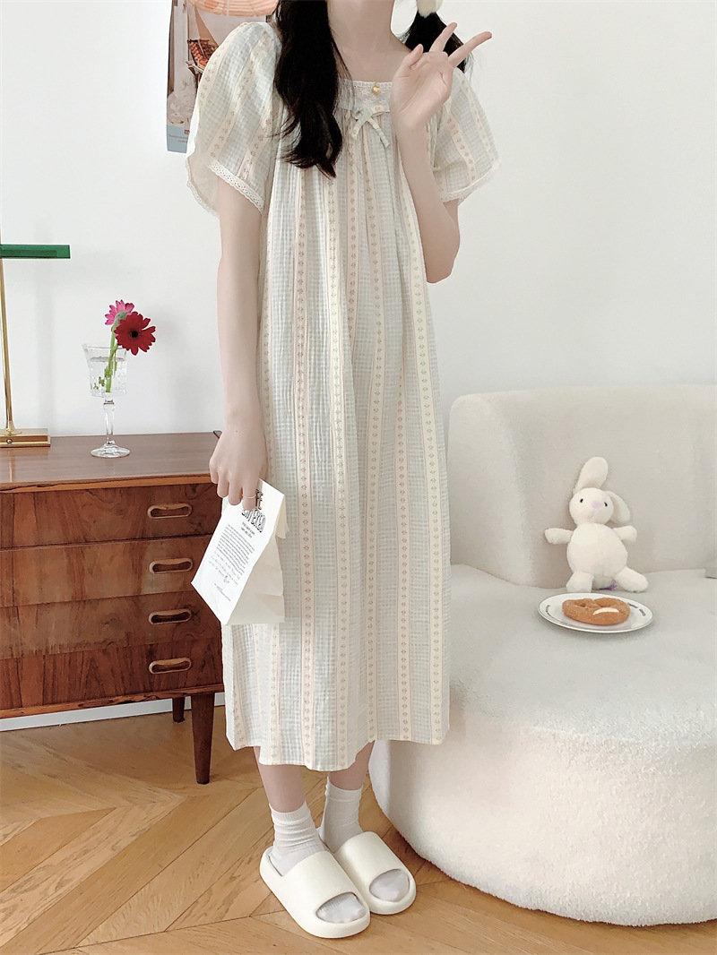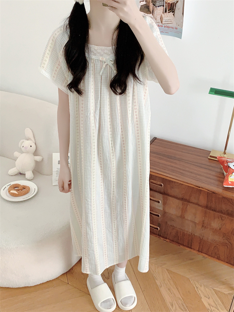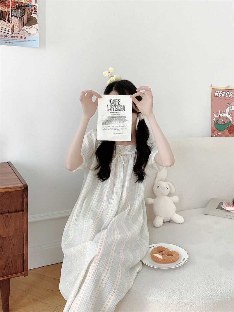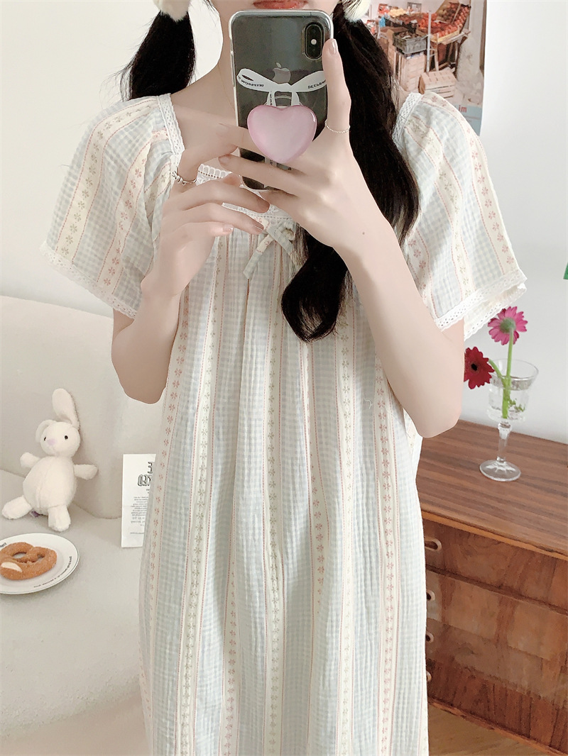 Tags: Korean nightgown, floral lace sleepwear, relaxed loungewear, loose fit pajamas, 2025 women's homewear, breathable cotton dress