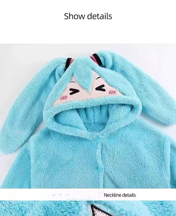 Hatsune Miku Coral Fleece Robe Winter New Thickened Bathrobe Cute Cartoon Warm Loungewear Pajamas