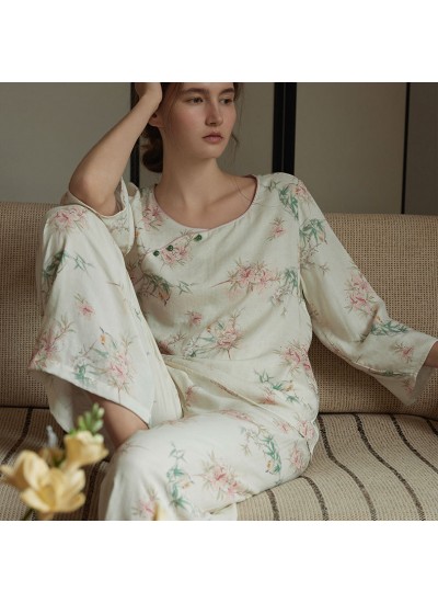 Tags: women's pajamas, long sleeve pajamas, sleepwear, loungewear, nightwear, botanical print, soft pajamas, comfortable sleepwear, ladies pajamas, home wear