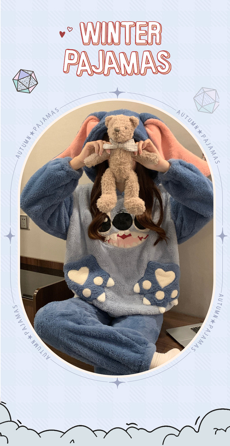 Tags: women's pajamas, coral fleece pajamas, stitch pajamas, cartoon pajamas, hooded pajamas, long sleeve pajamas, plus size pajamas, flannel pajamas, spring pajamas, fall pajamas, comfortable pajamas, warm pajamas, cozy pajamas, home clothes, sleepwear, women's clothing