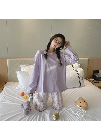 women's long sleeve cotton pajamas cartoon round neck Pullover two piece sleepwear setsNo: osali636689484913
